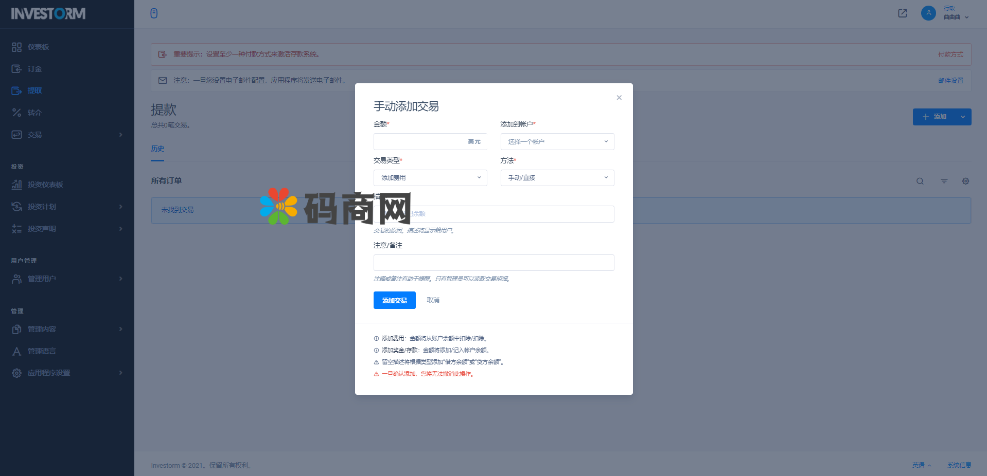 系统全新框架开发,专注虚拟支付投资得系统,内设功能齐全,系统是自适应得
