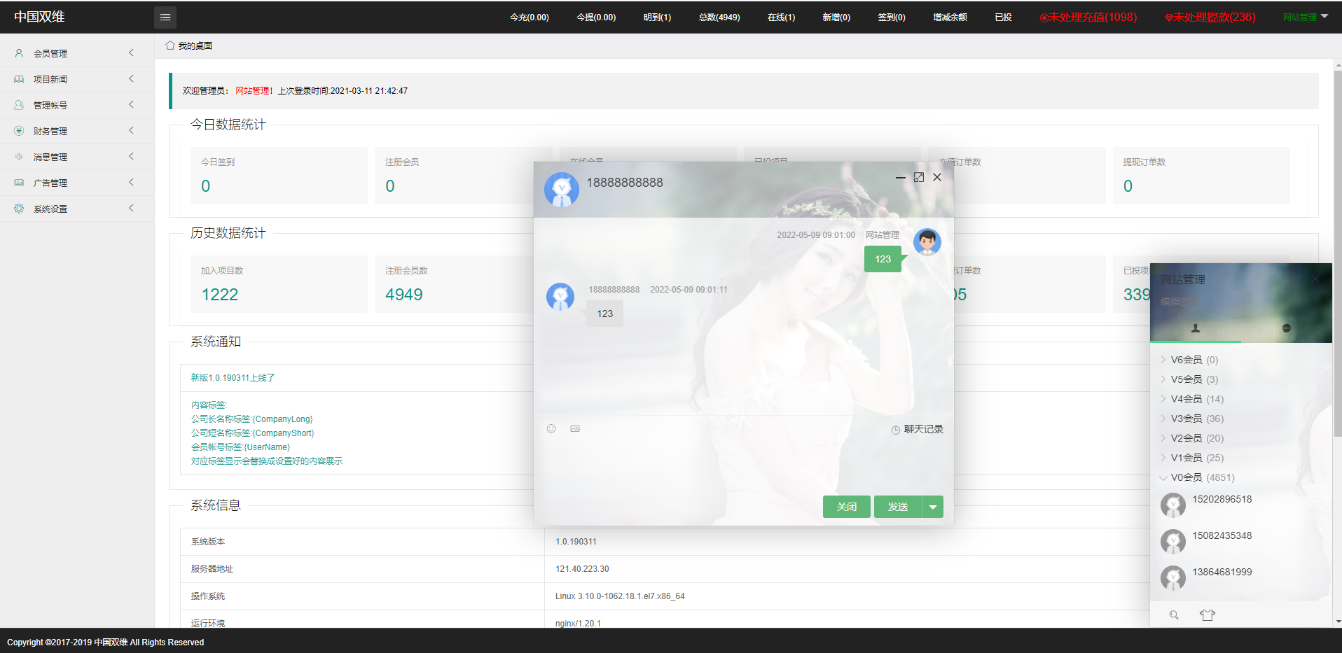 这类系统功能都是差不多的,此套也带客服系统,不过前端需要自己改下链接