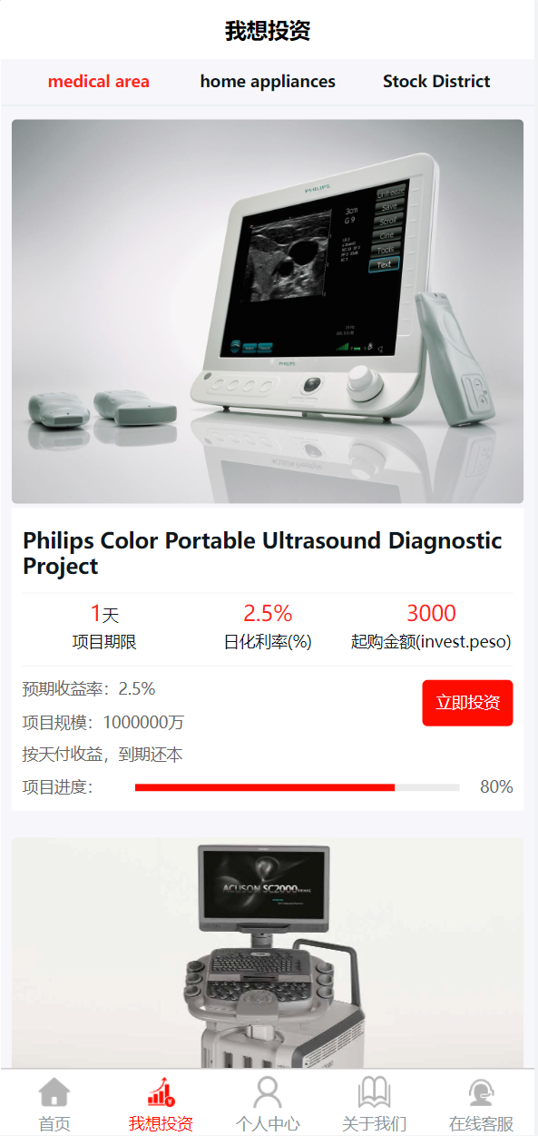 购买项目分红,后台可设置利息,金额,每日返佣