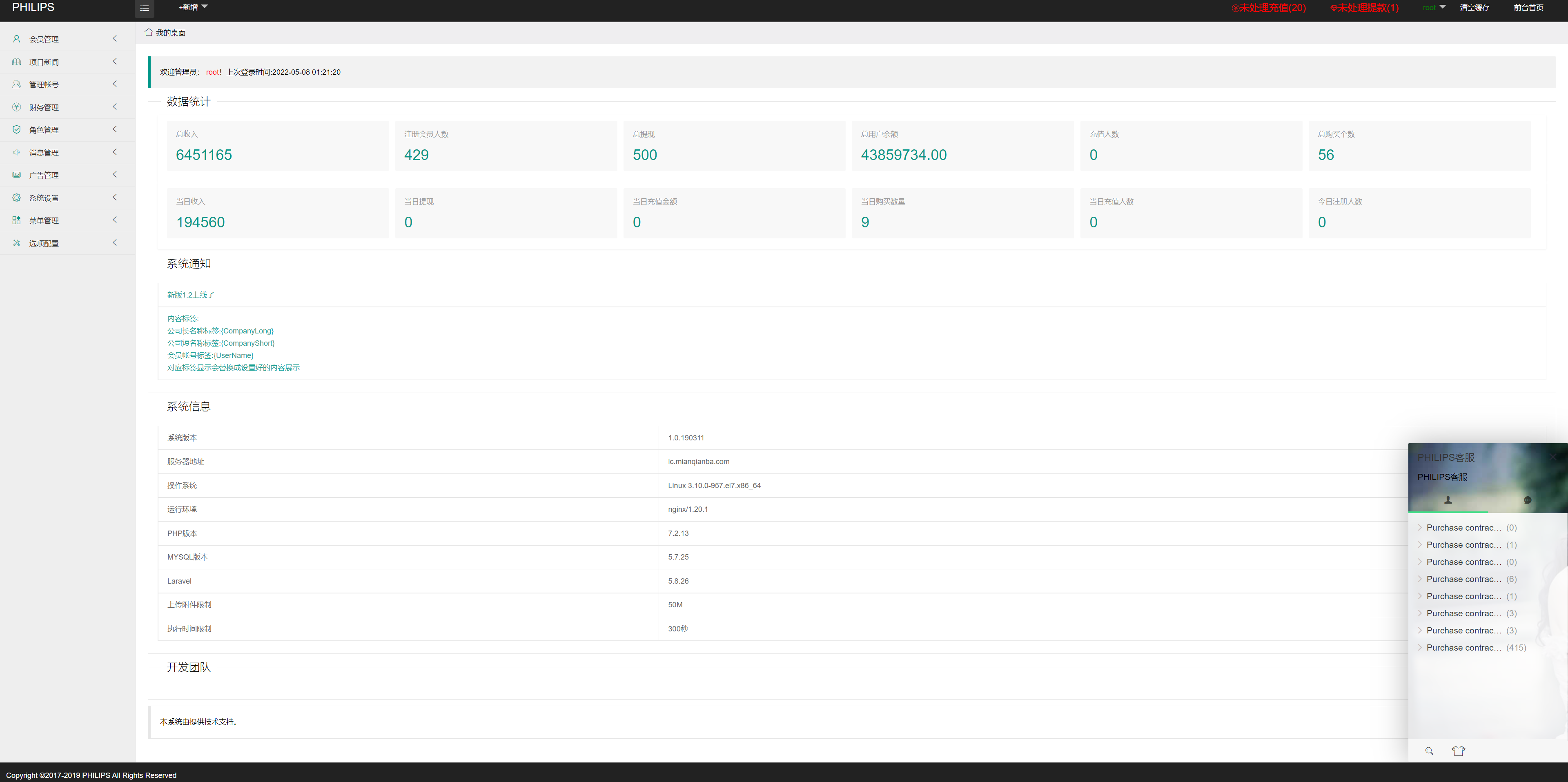 新增代理后台,数据详细,可查看下线和下线统计