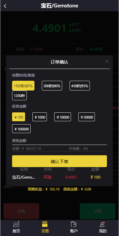一套二开前端UI得贵金属微交易系统,前端产品后台可任意更换