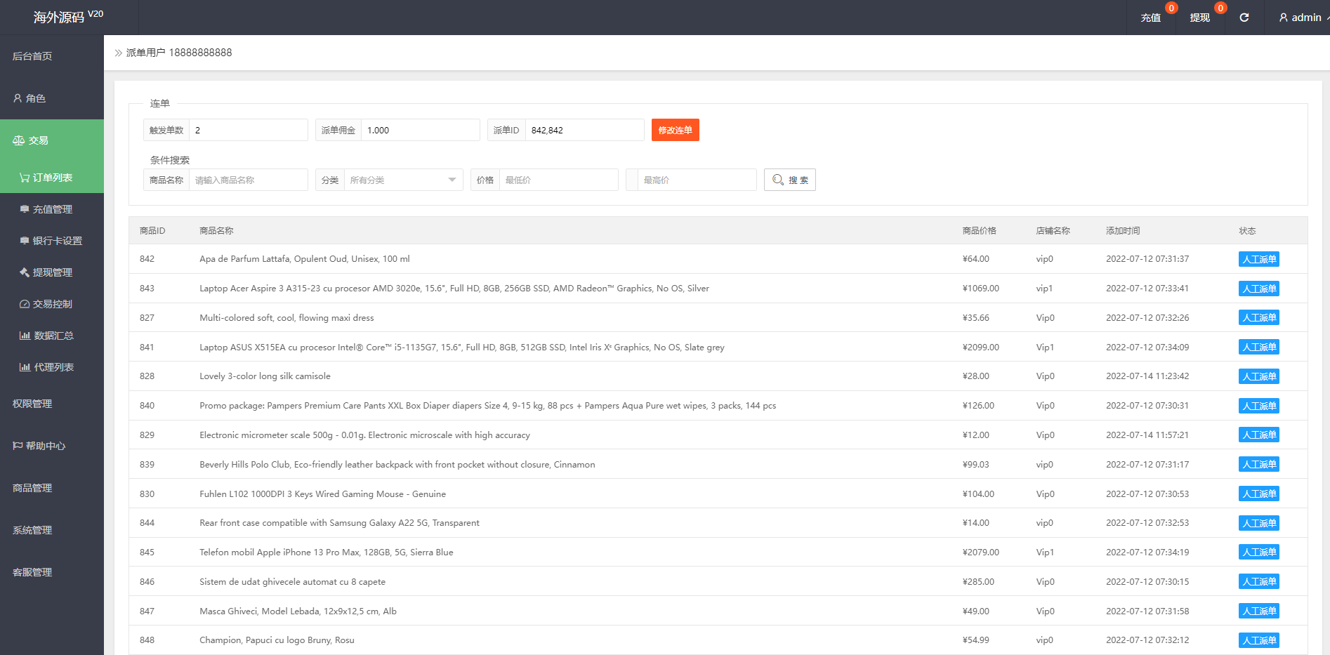 海外抢单刷单系统/手动派单/爆单卡单/多语言刷单