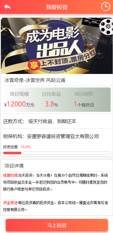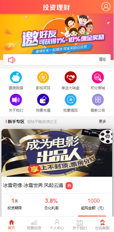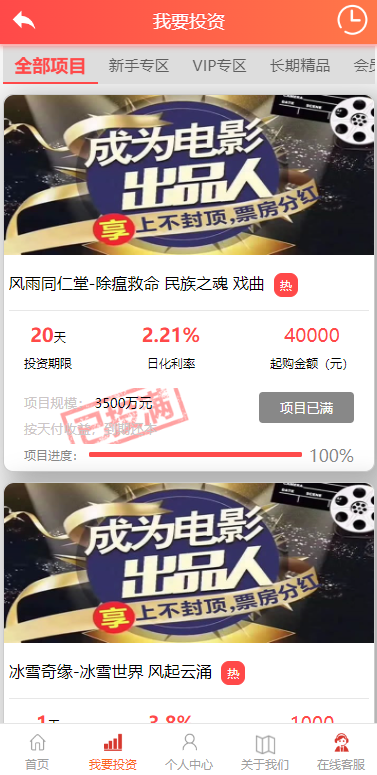经典版影视理财系统/影视投资众筹系统/投资理财源码