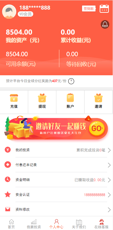 项目投资理财系统/投资众筹系统/分红返利