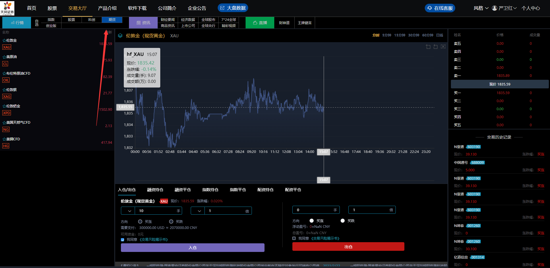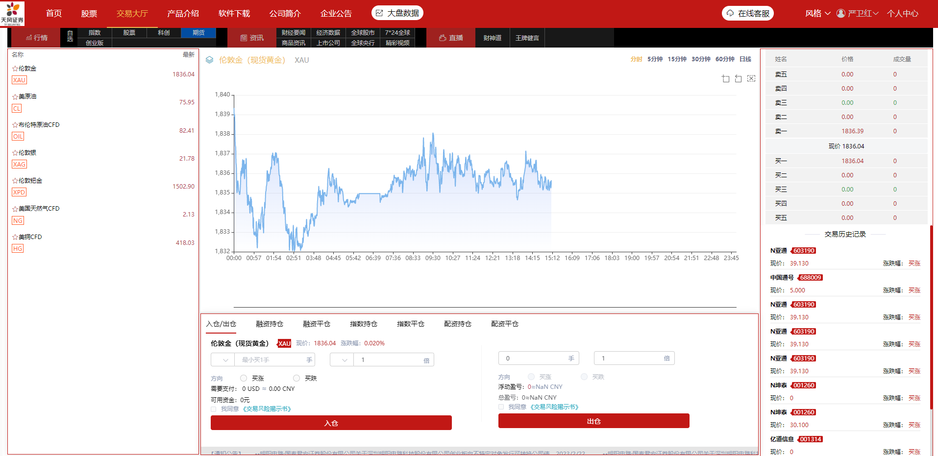 前端新增期货交易,K线数据完整对接,分时走势正常