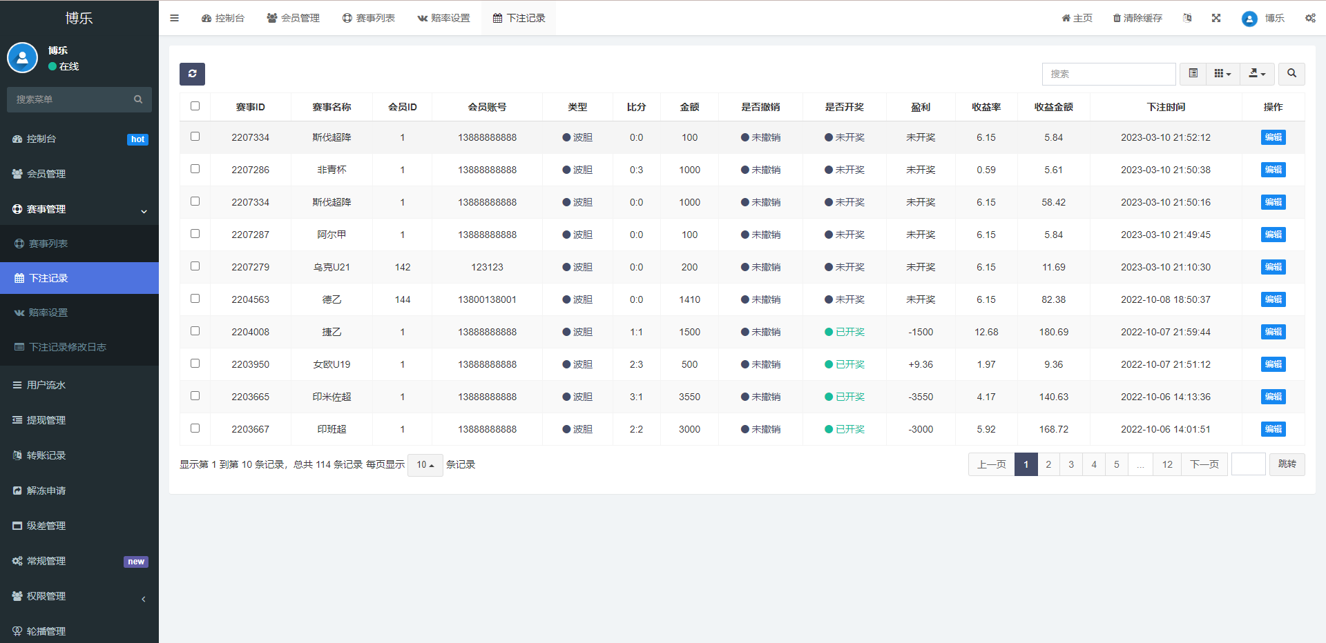 系统是FastAdmin框架开发的反波胆系统,前端是VUE带源码 会员互转等功能,默认对接的采集正常使用,开奖后台手动