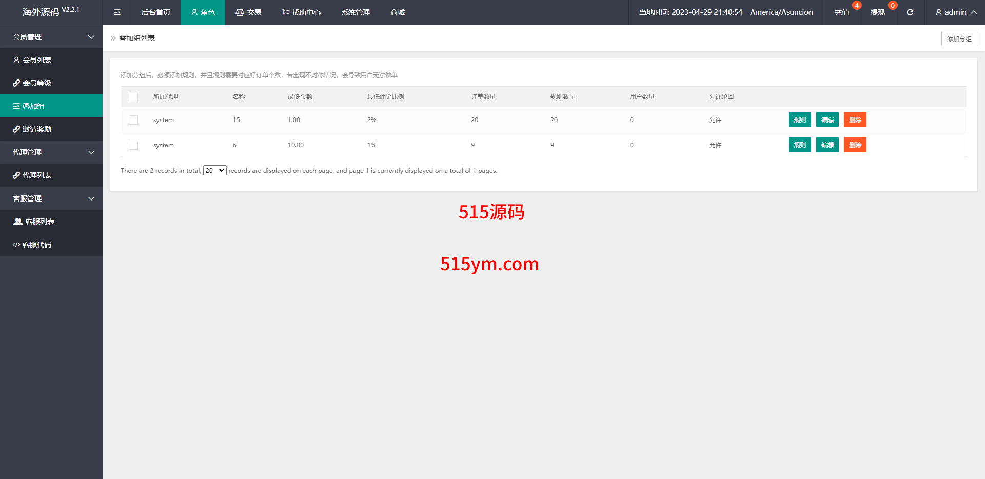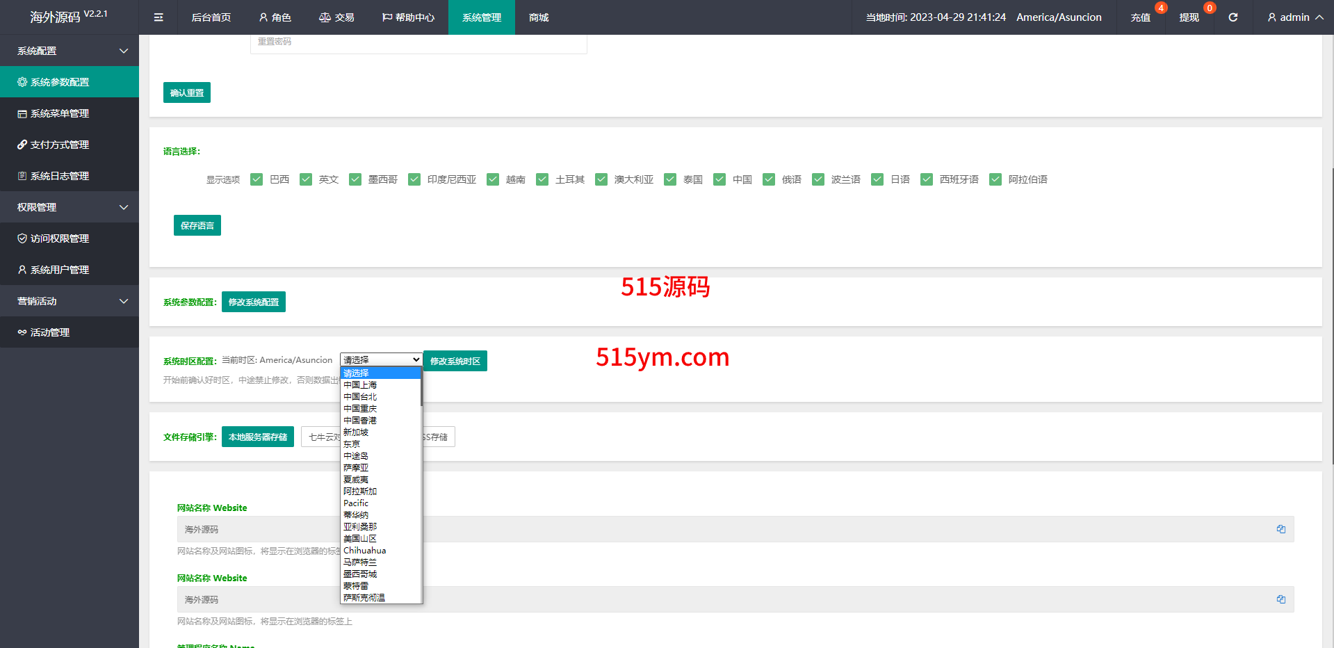 系统支打针、叠加组、余额宝、时区设置等功能