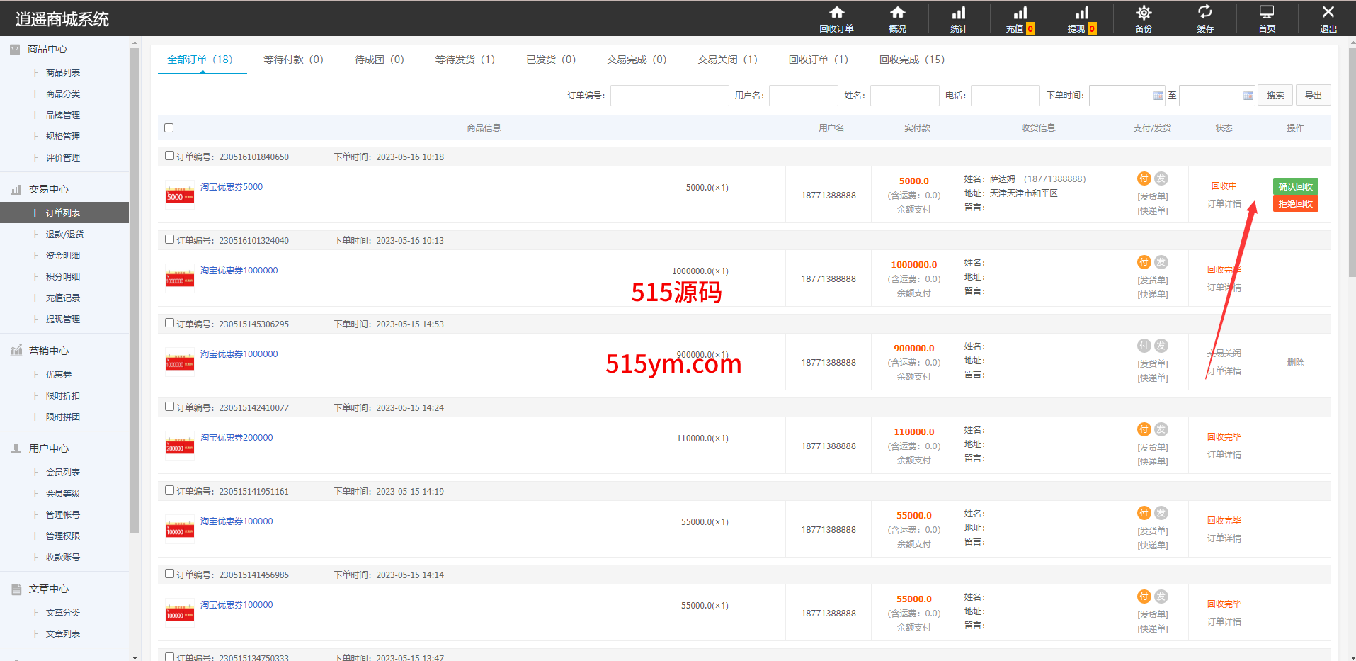 回收系统直接集成系统不需要二开搭建,前台提交后台订单直接回收,新增功能每个商品可设置回收折扣