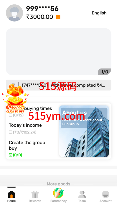 一套海外的拼团回购投资理财系统,前端英文跟印地语