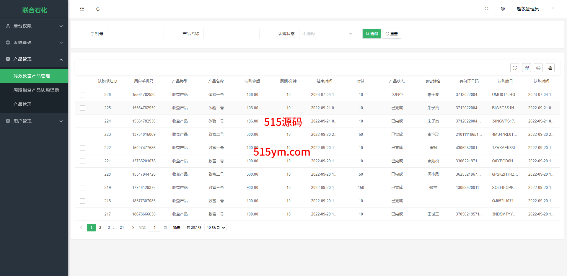 联合石化认购理财系统前端使用uinapp开发带源码,后端thinkphp