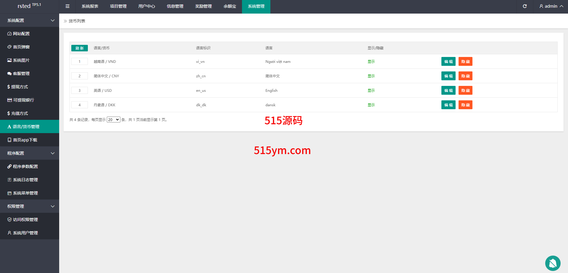 系统功能完善,前端多语言,系统产品后台可修改不限项目类型