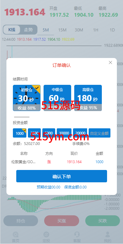 uniapp版微盘系统/虚拟币微交易系统/伪交易所系统