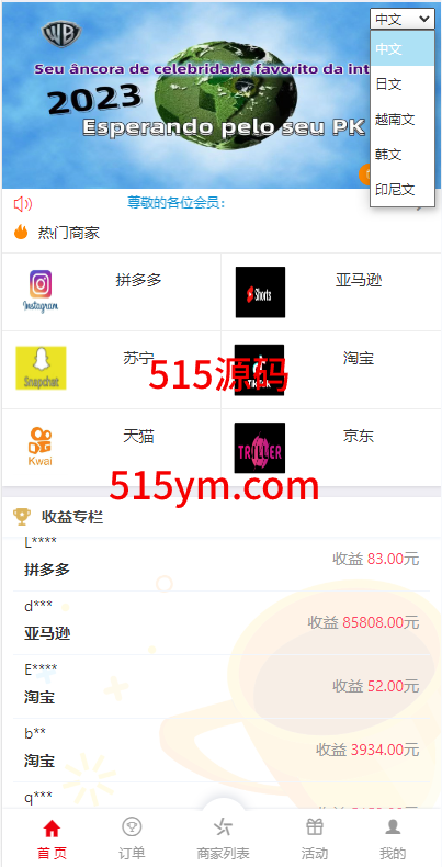 系统前端是单葡萄牙语言的伪商城刷单系统,带代理后台跟预设