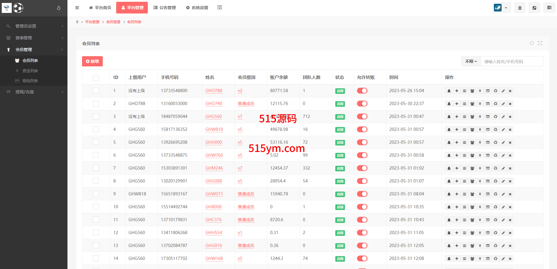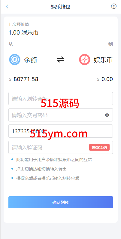 支持用户余额互转,充值方式有银行卡、usdt、口令红包、易支付,ng钱包互转余额,后台带回收功能