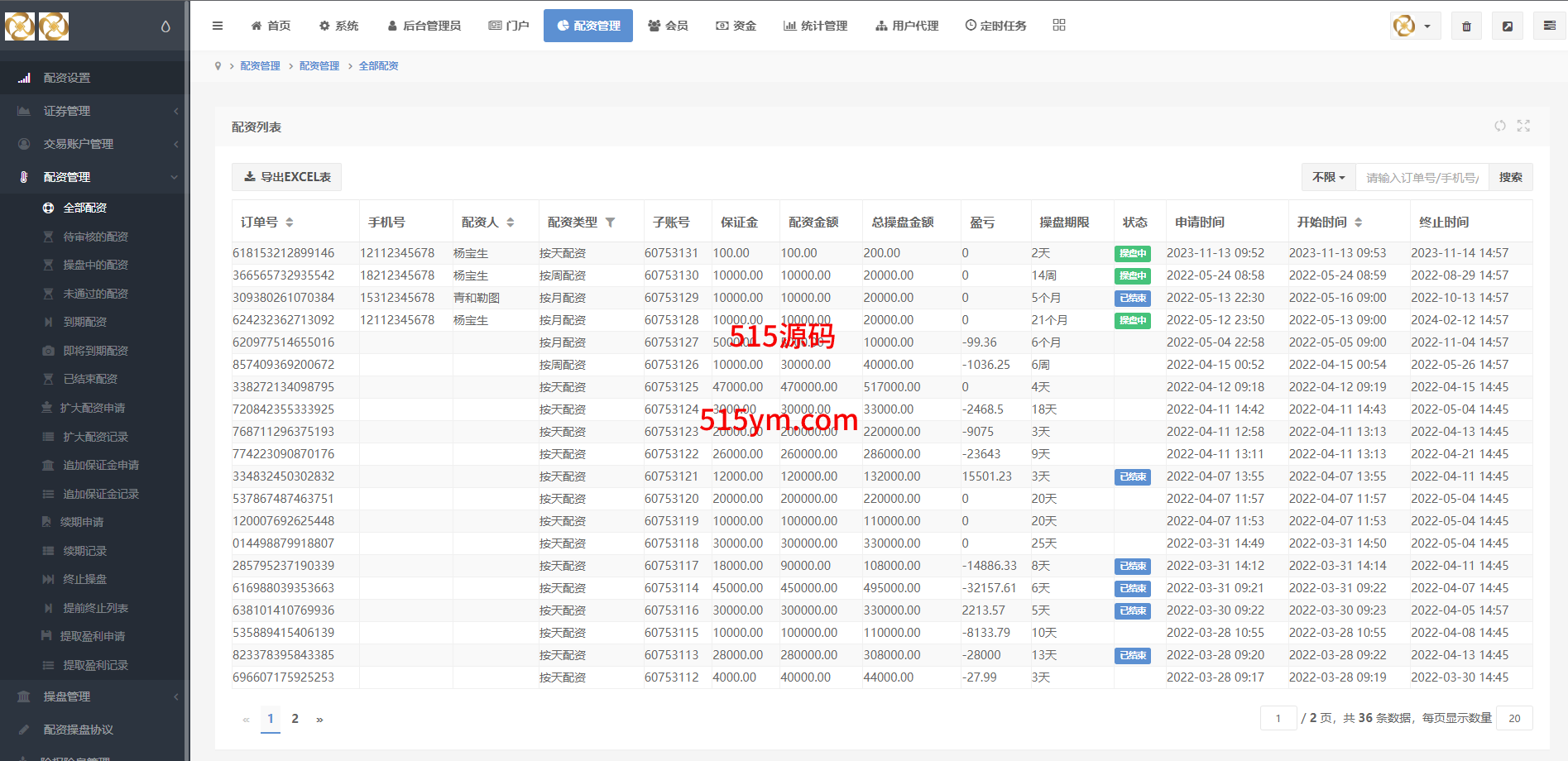 系统可直接1~10倍配资,后台可根据需求更改配资倍数