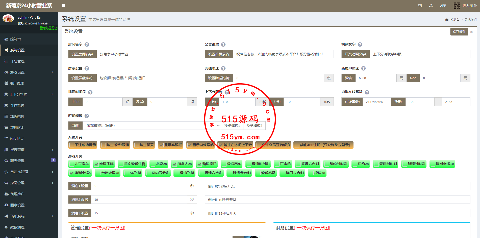 系统二开的功能比较多,可无限开房,智能控制,开奖预设,手动开奖,对接第三方付费采集,具体看图