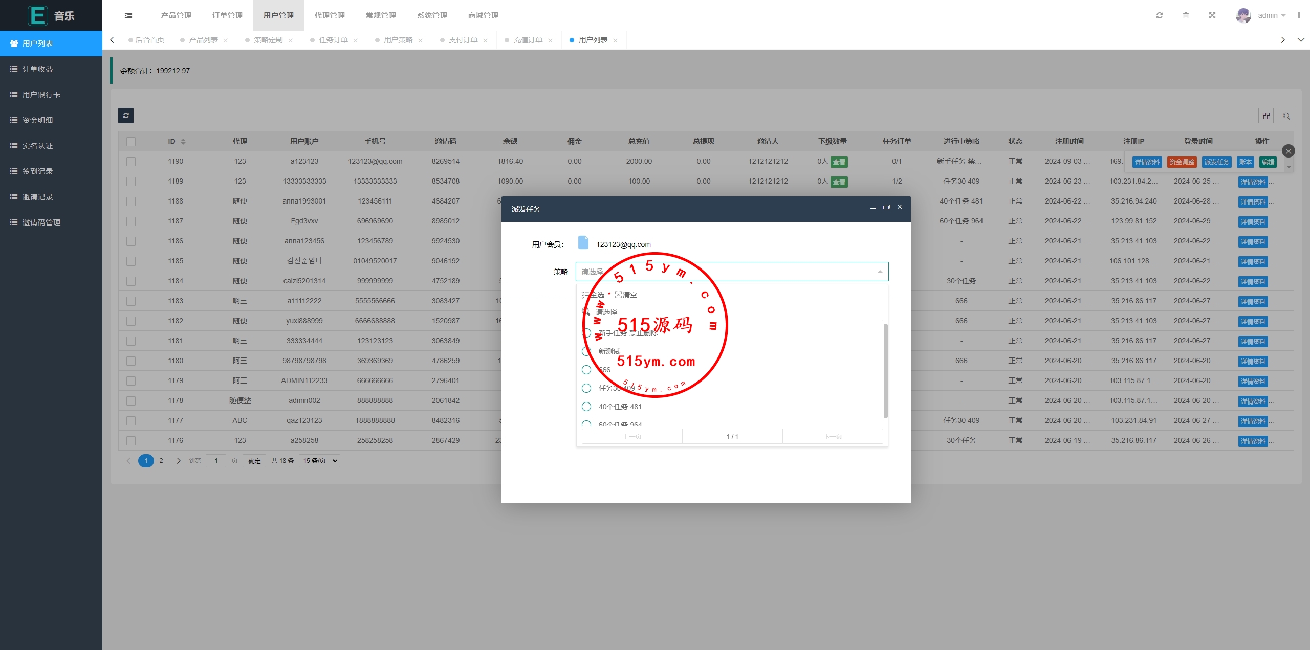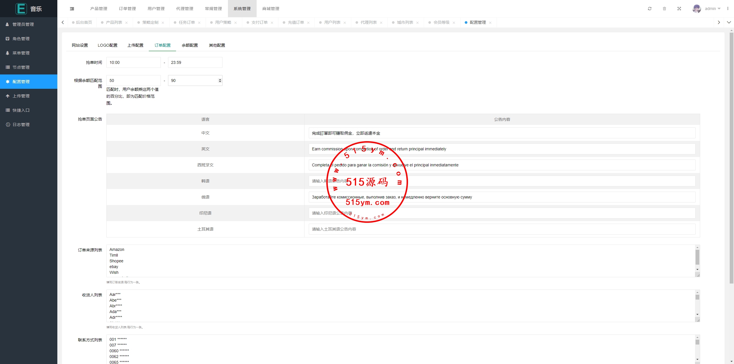 系统支持用户策略定制派单,支持代理后台