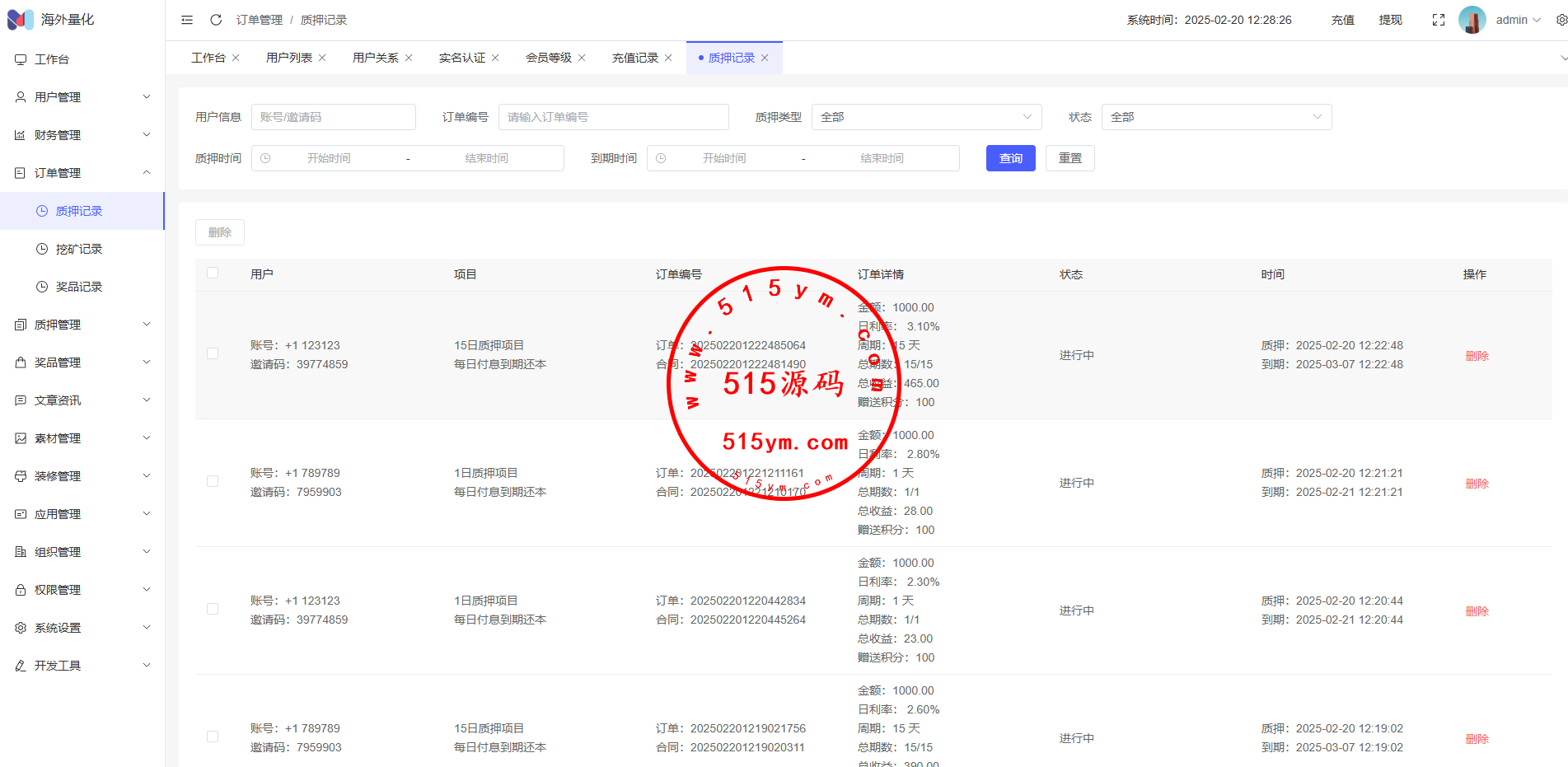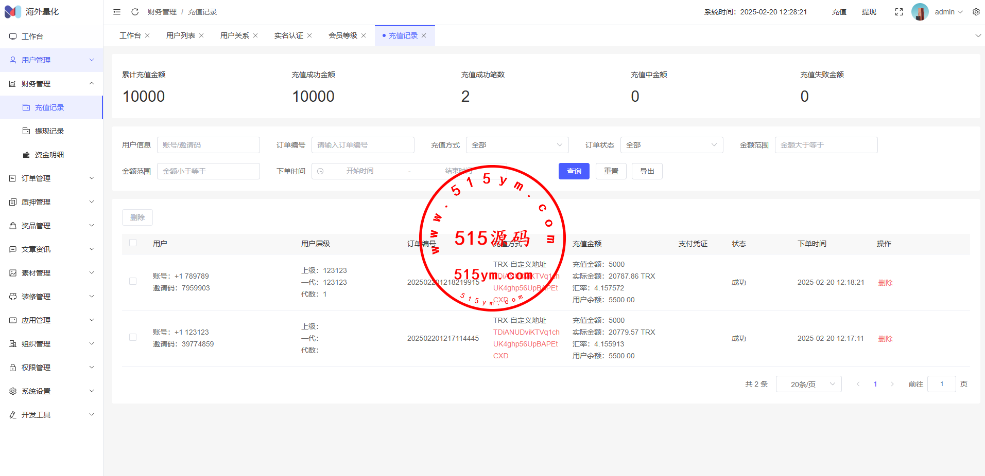 17、代理功能,后台开启用户为代理,即可登录代理端查看代理下级用户情况