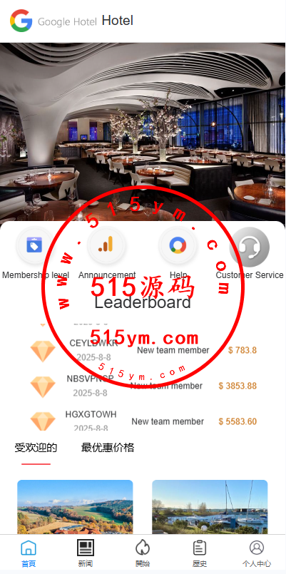 前端UI以Google为主题得酒店刷单系统