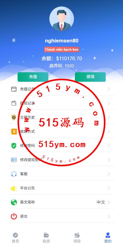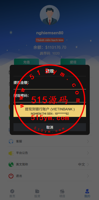 支持投资理财,自带内置客服系统,后台纯越南语