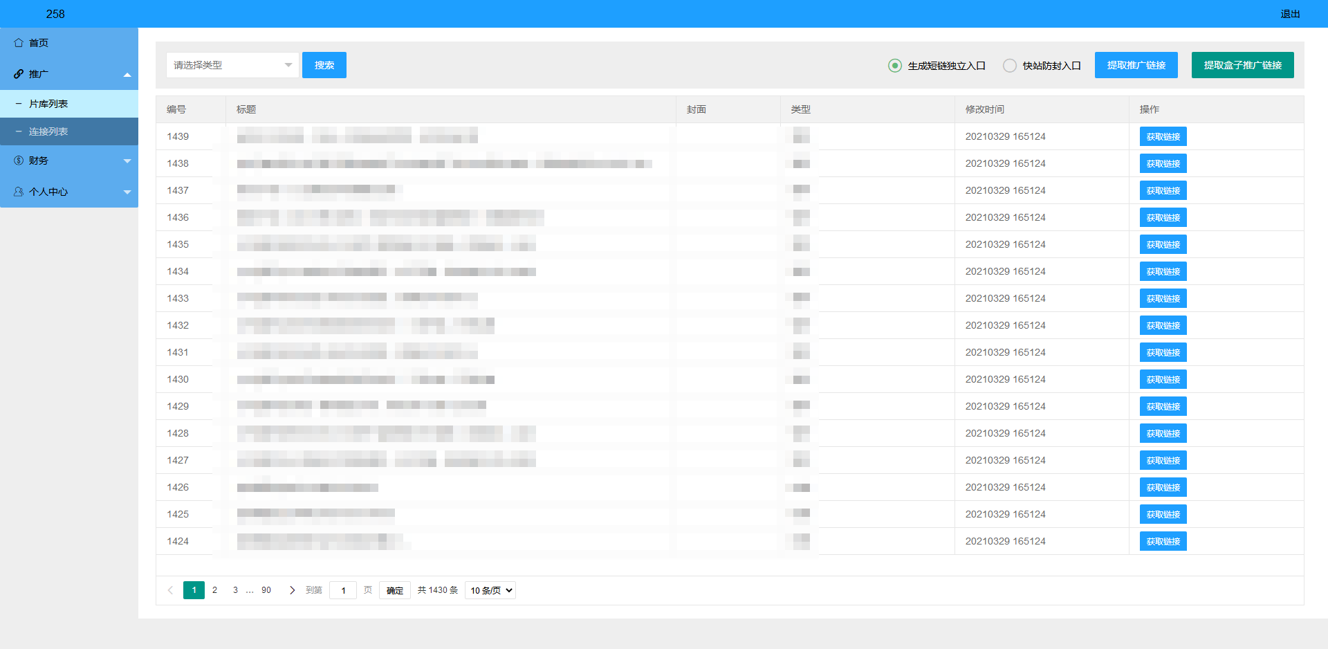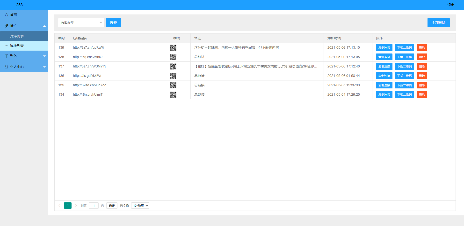 5、一键生成总推广链接,每次生成链接都不一样,防止短链被墙;