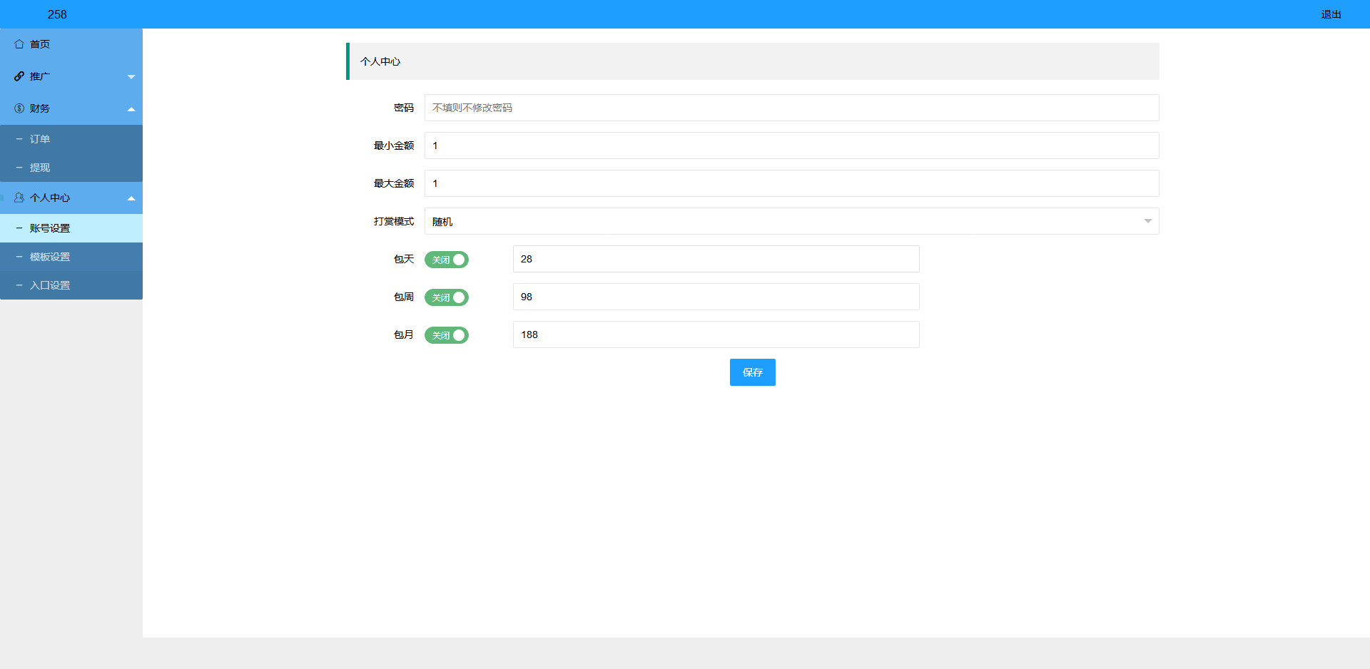 3、系统自带包天、包周、包月,不用改代码,直接后台设置;