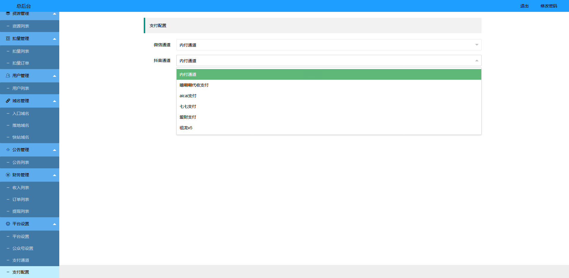 4、系统自带市面上常用的支付接口,一键配置,也可以增加新接口;