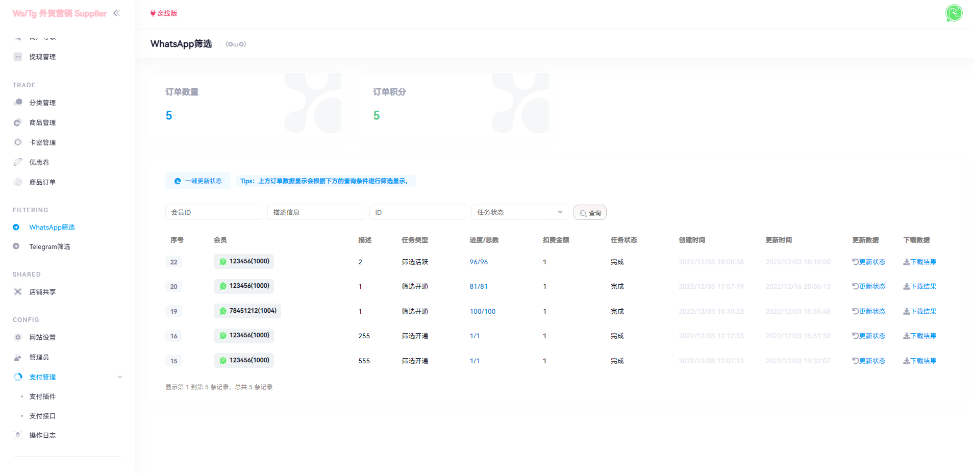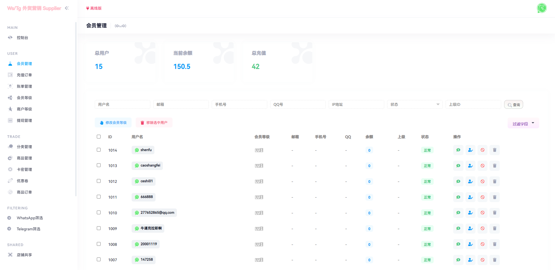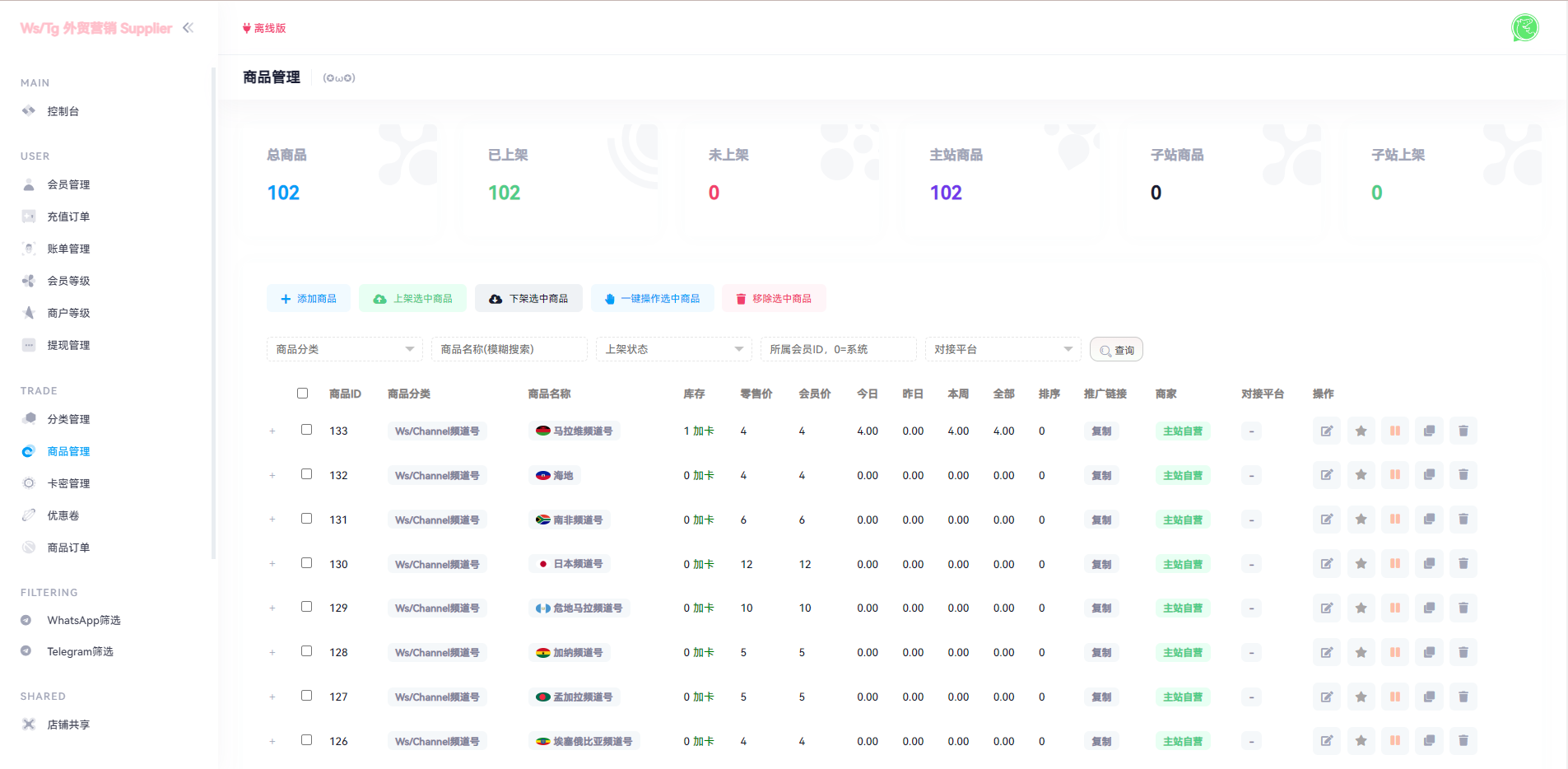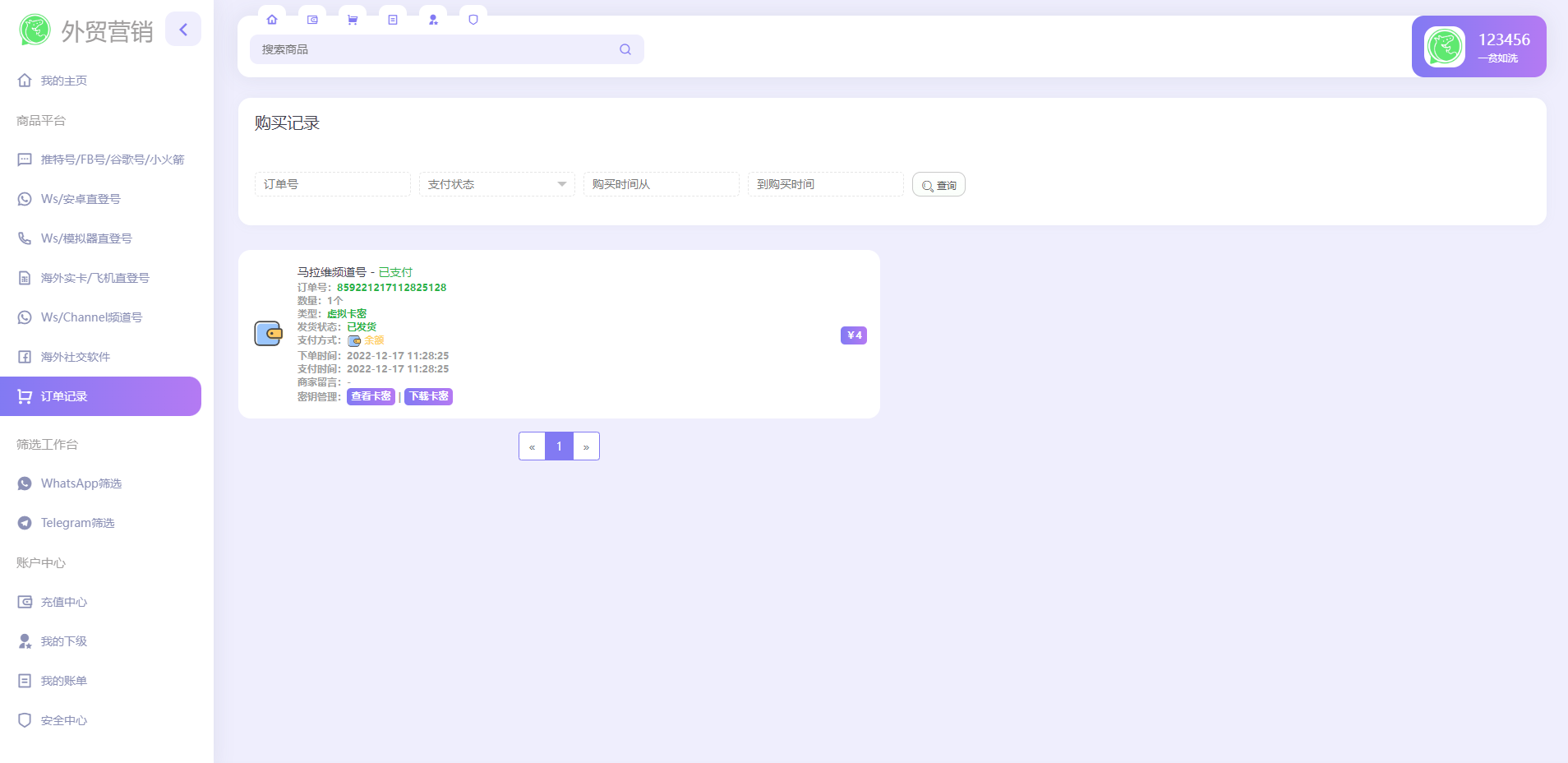 1.后台上传各种账号前台可以下单购买