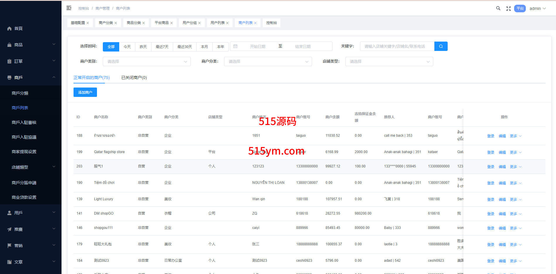 系统特点关键词:多商户入驻、商品一键铺货、进货差价、平台代发、商品采集、店铺保证金、USDT充提、店铺虚拟访客关注加购数据、一键批量注册用户、批量下单爆单、定时下单、自建物流信息等