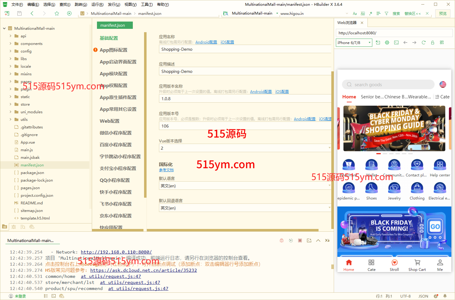 PC前端是VUE源码,手机前端是uniapp,后端源码同样是VUE、编译后运行是js+php、API是thinkphp