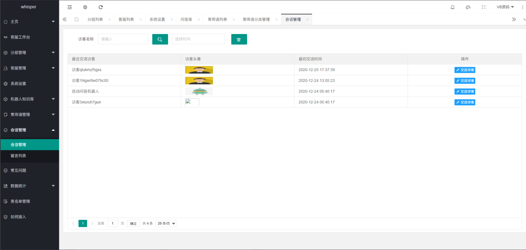 Whisper客服系统多商户版V2.1.11+机器人+pc软件