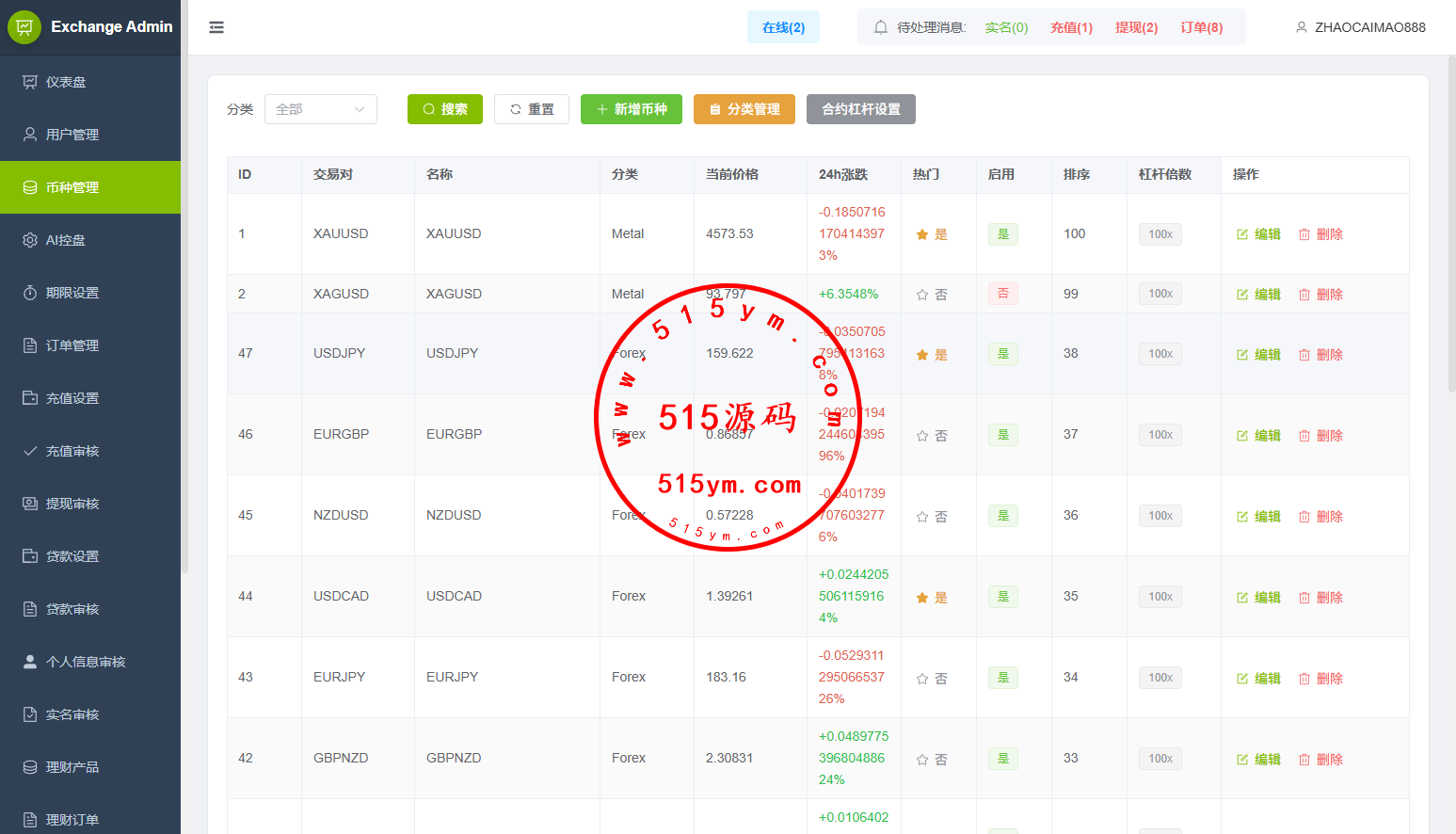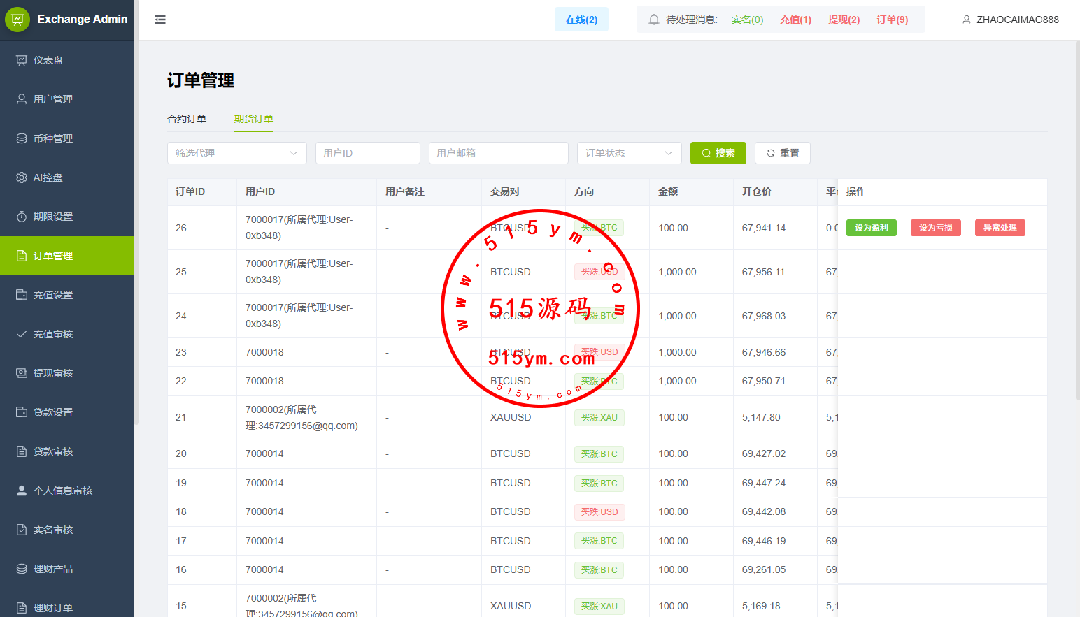 功能支持:合约,期权,贷款,理财,实名认证,权限代理,AI控盘等功能