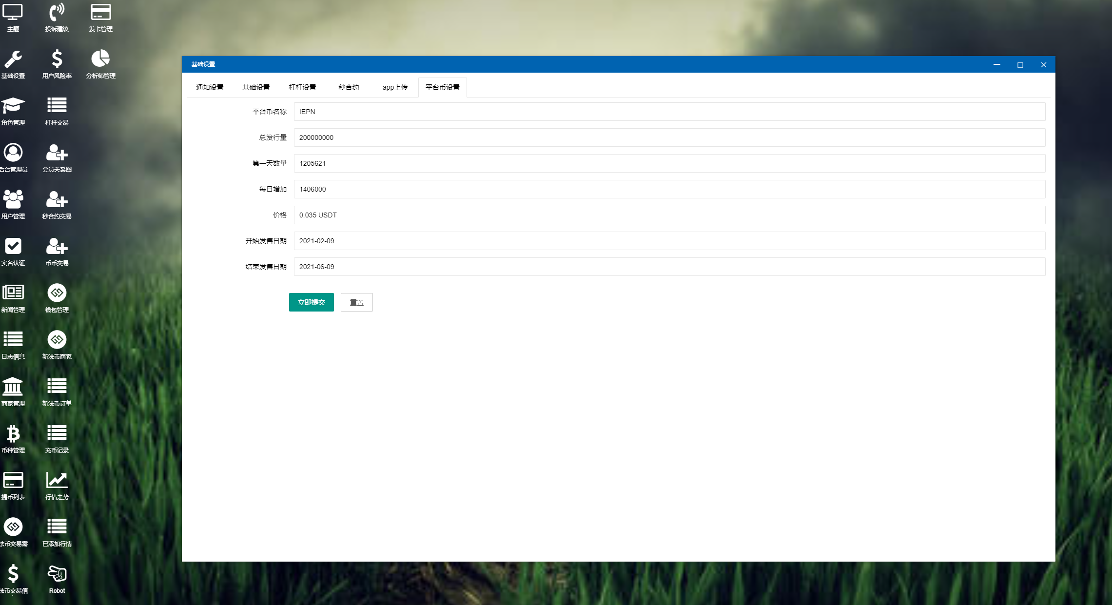 1、平台概况(实时行情、高端K线、合约交易、BI数据分析、币种统计、用户统计、交易统计、异常用户)