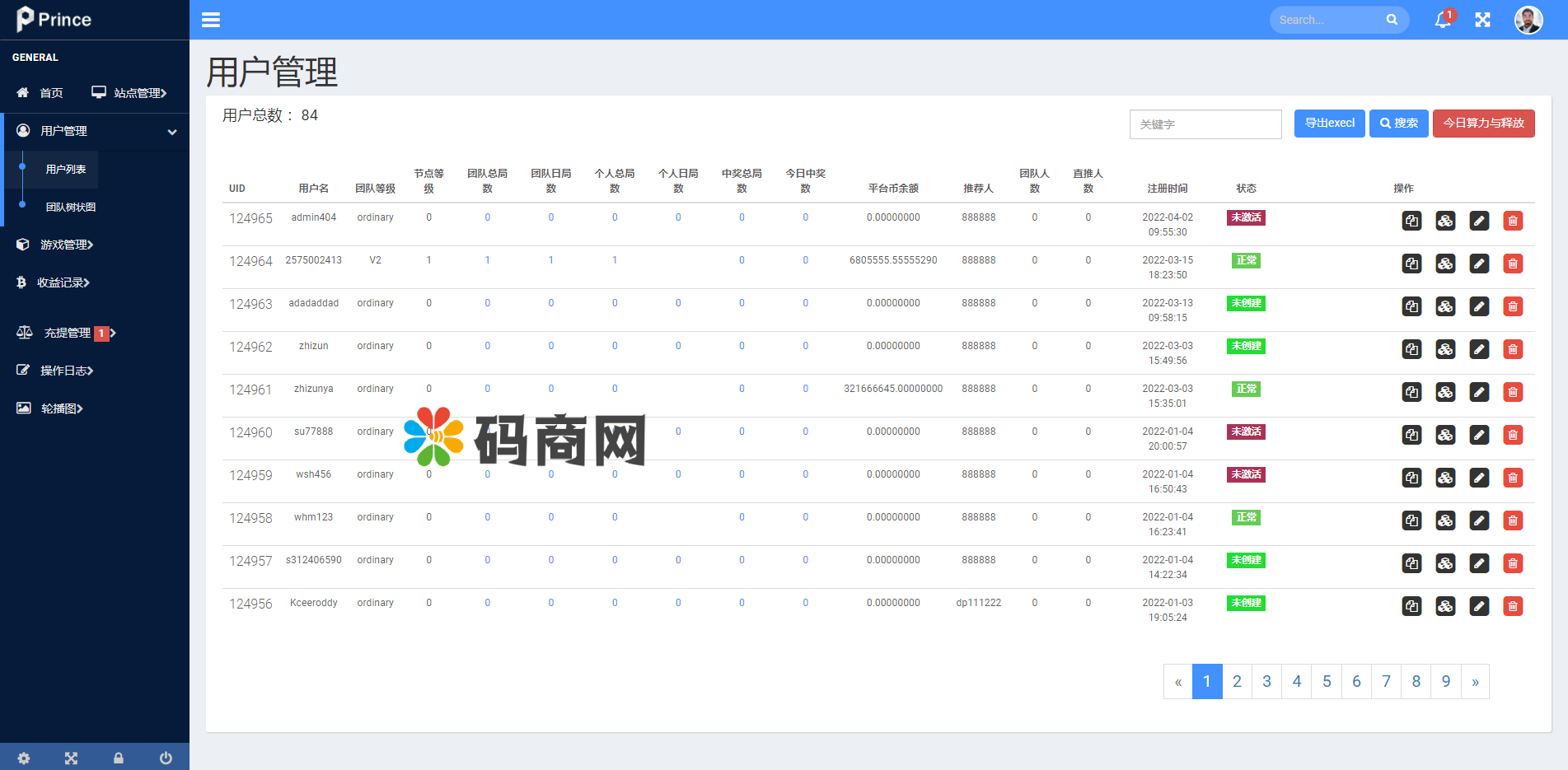页面包含个人的分享邀请好友、矿池挖矿、币币交易、拼团游戏,等功能。