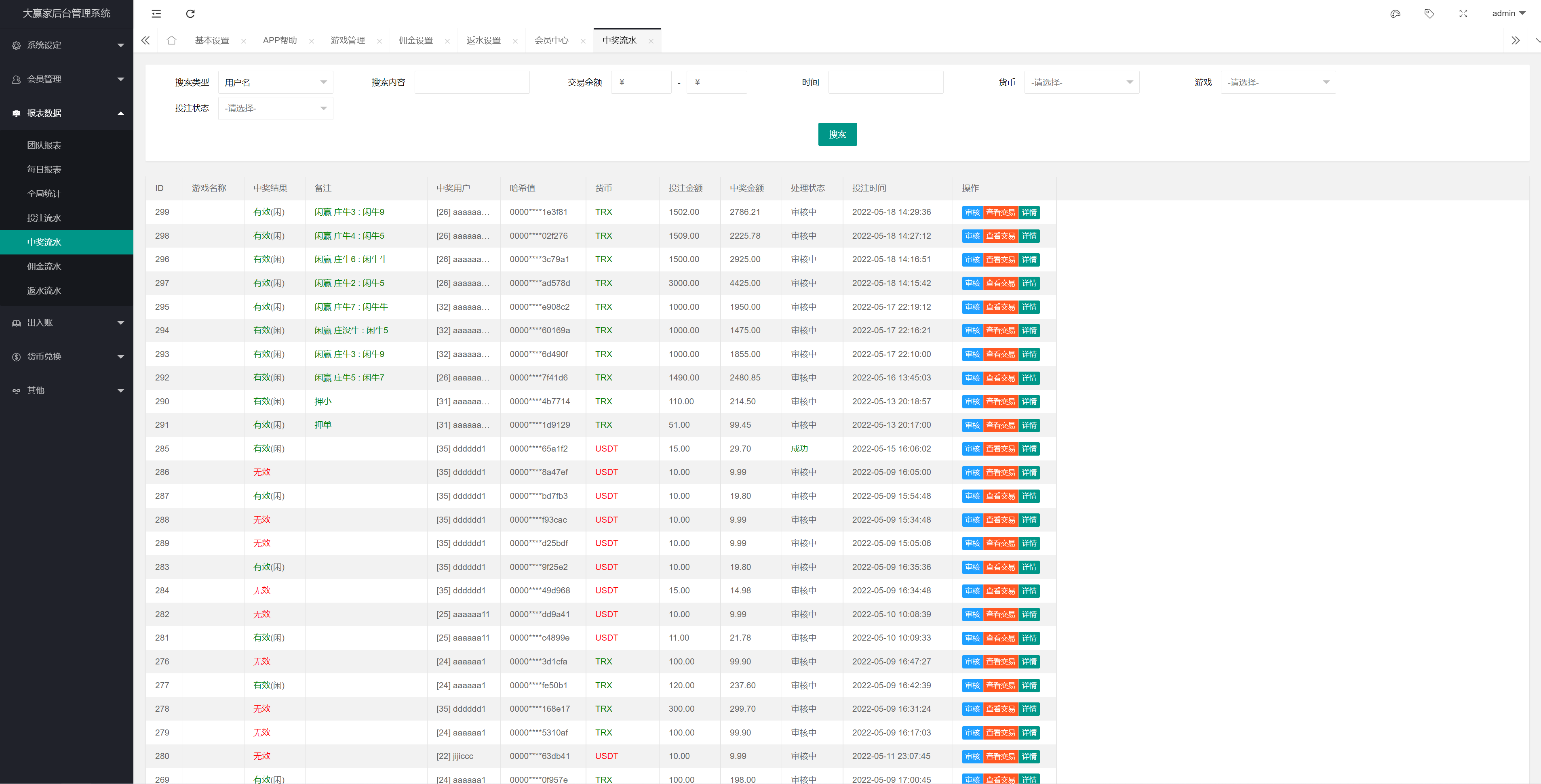 支持TRX兑换USDT功能,支持中奖审核打款