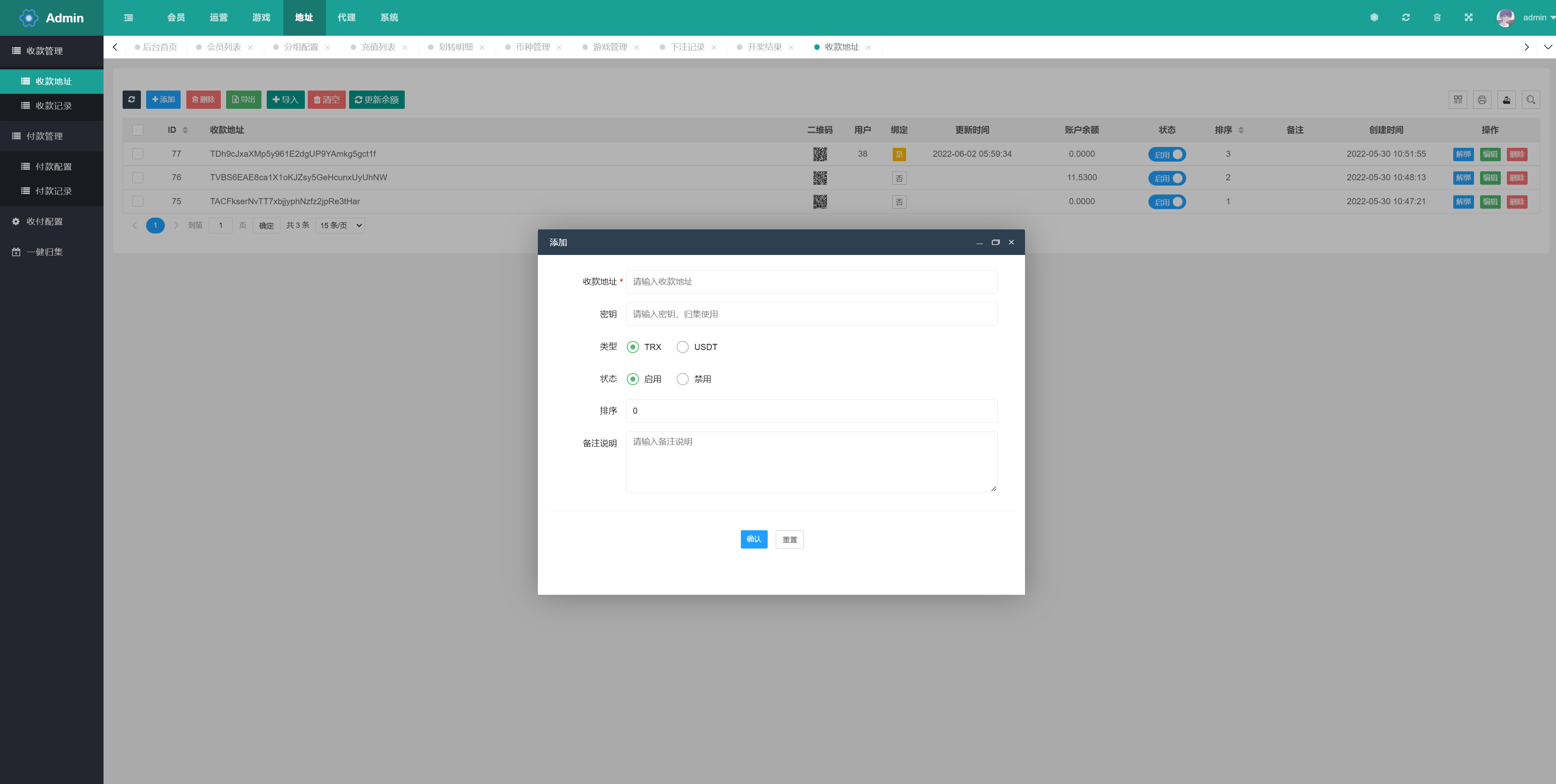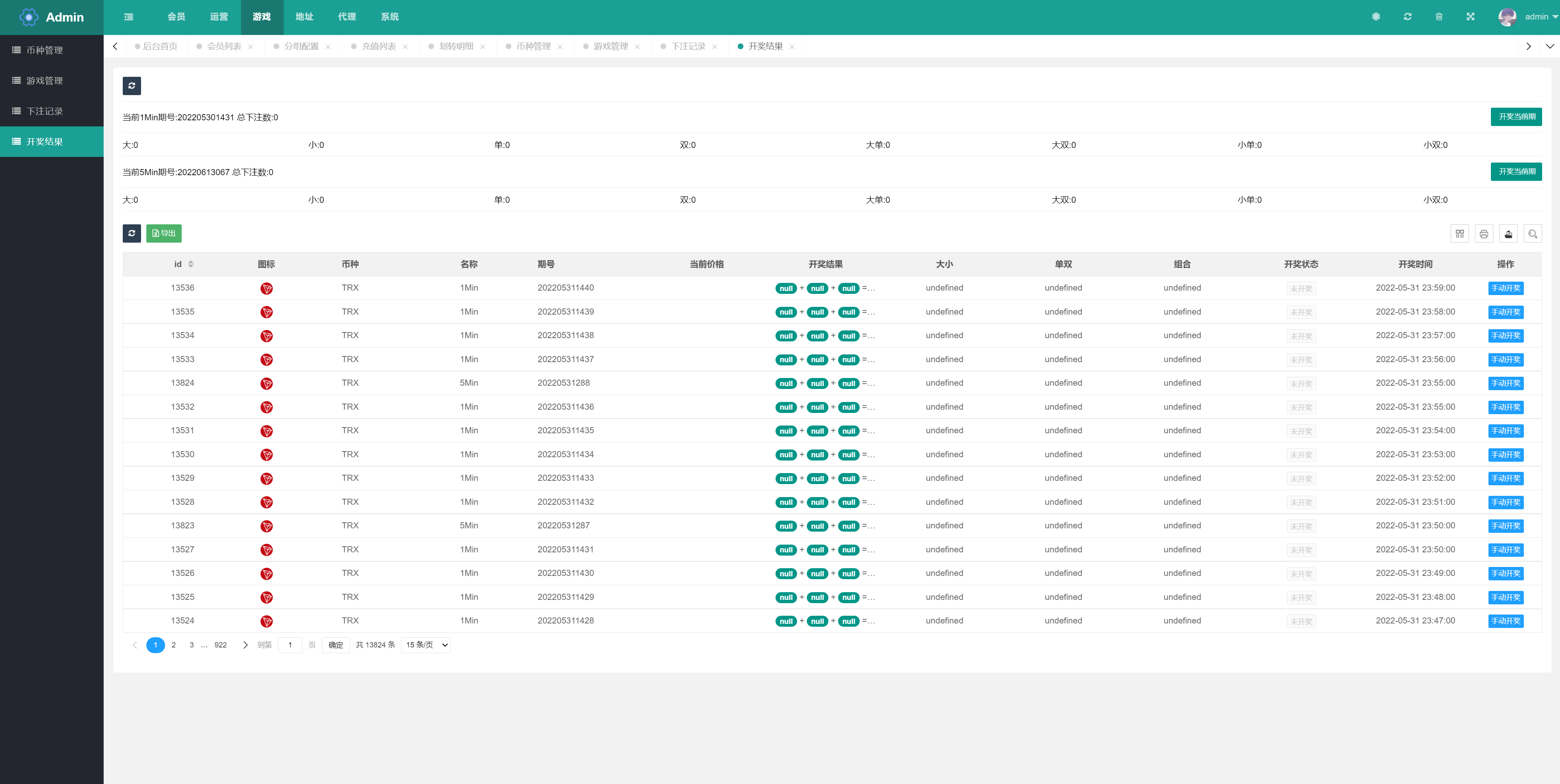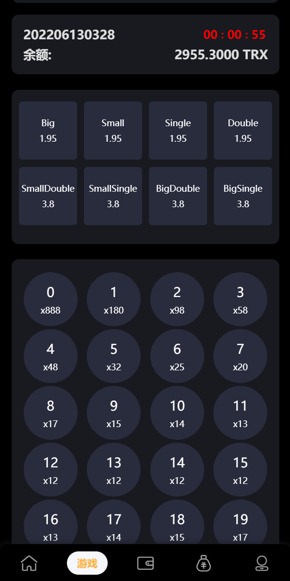 支持trx投注竞猜,开奖界面K线正常,开奖方式支持手动、自动开奖