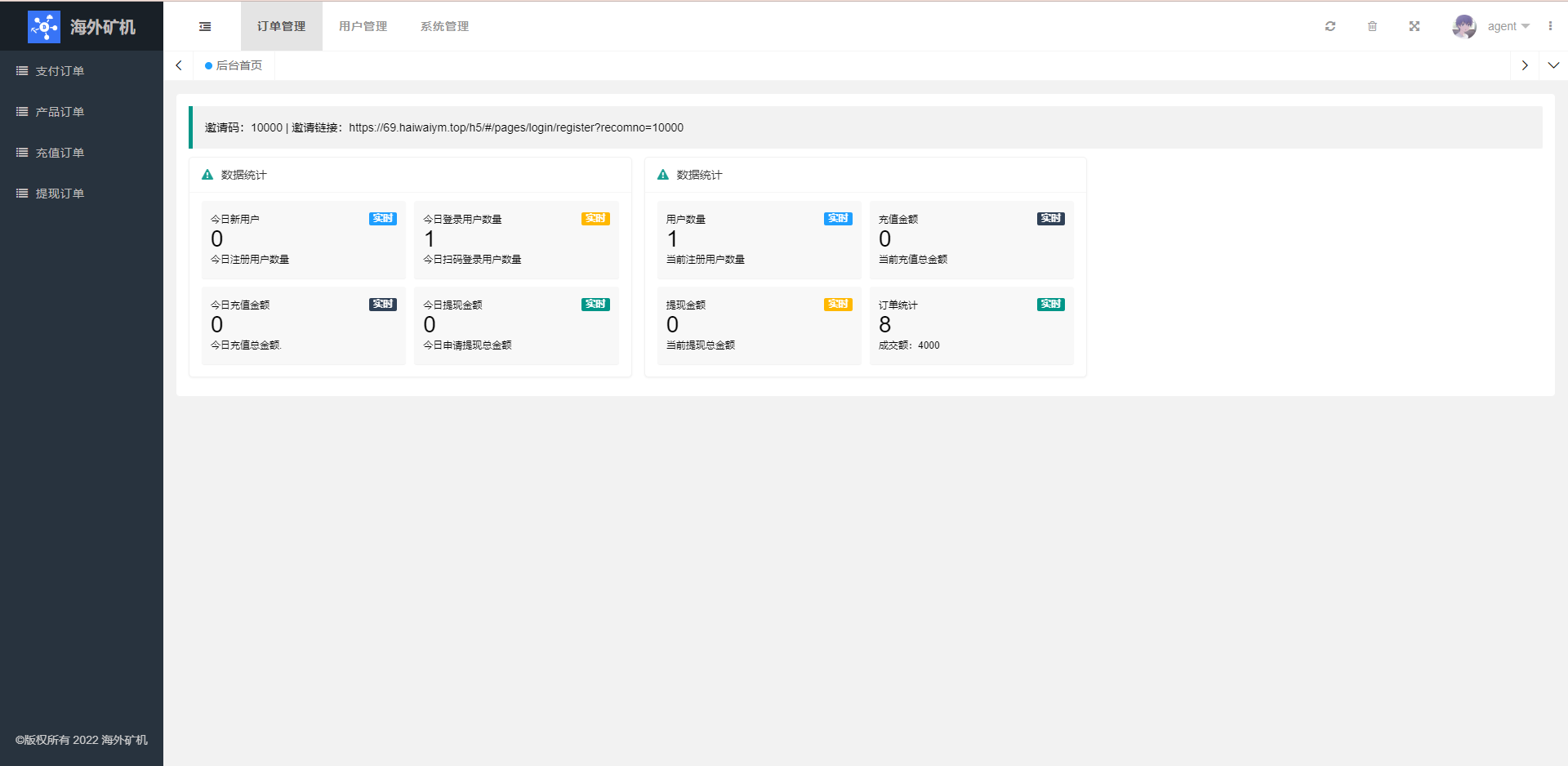 系统功能符合正常运营需求,功能有邀请裂变、签到等一些小功能