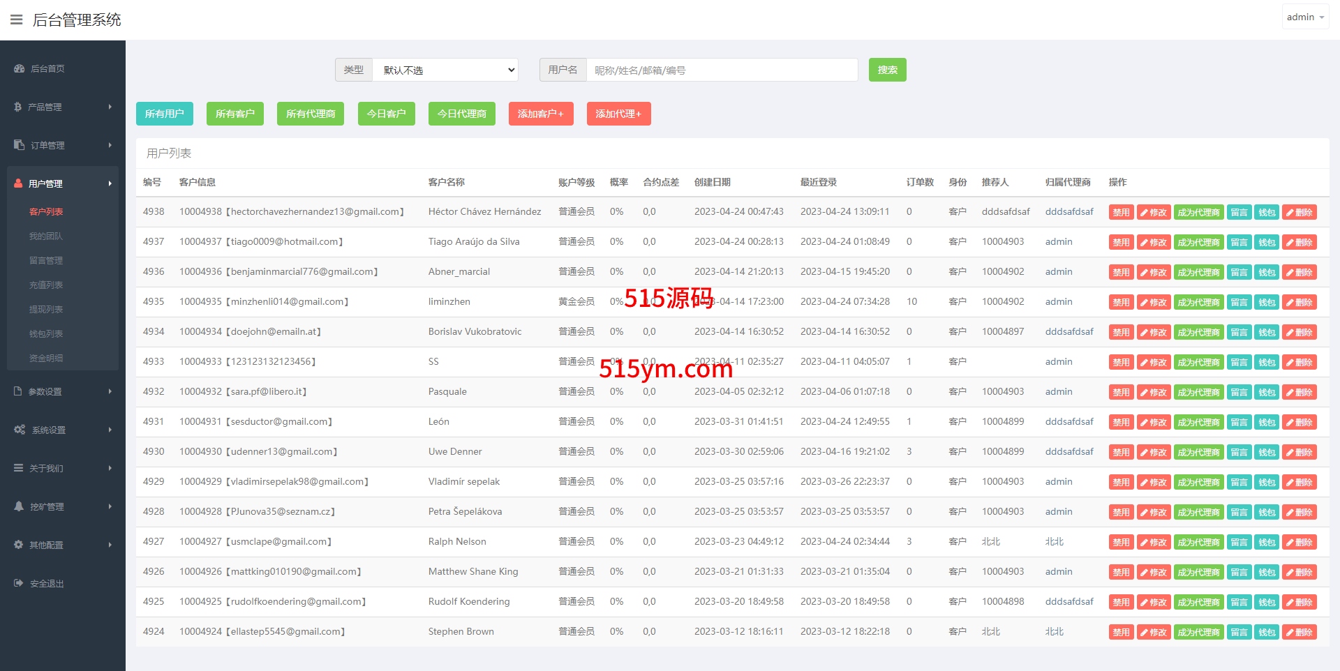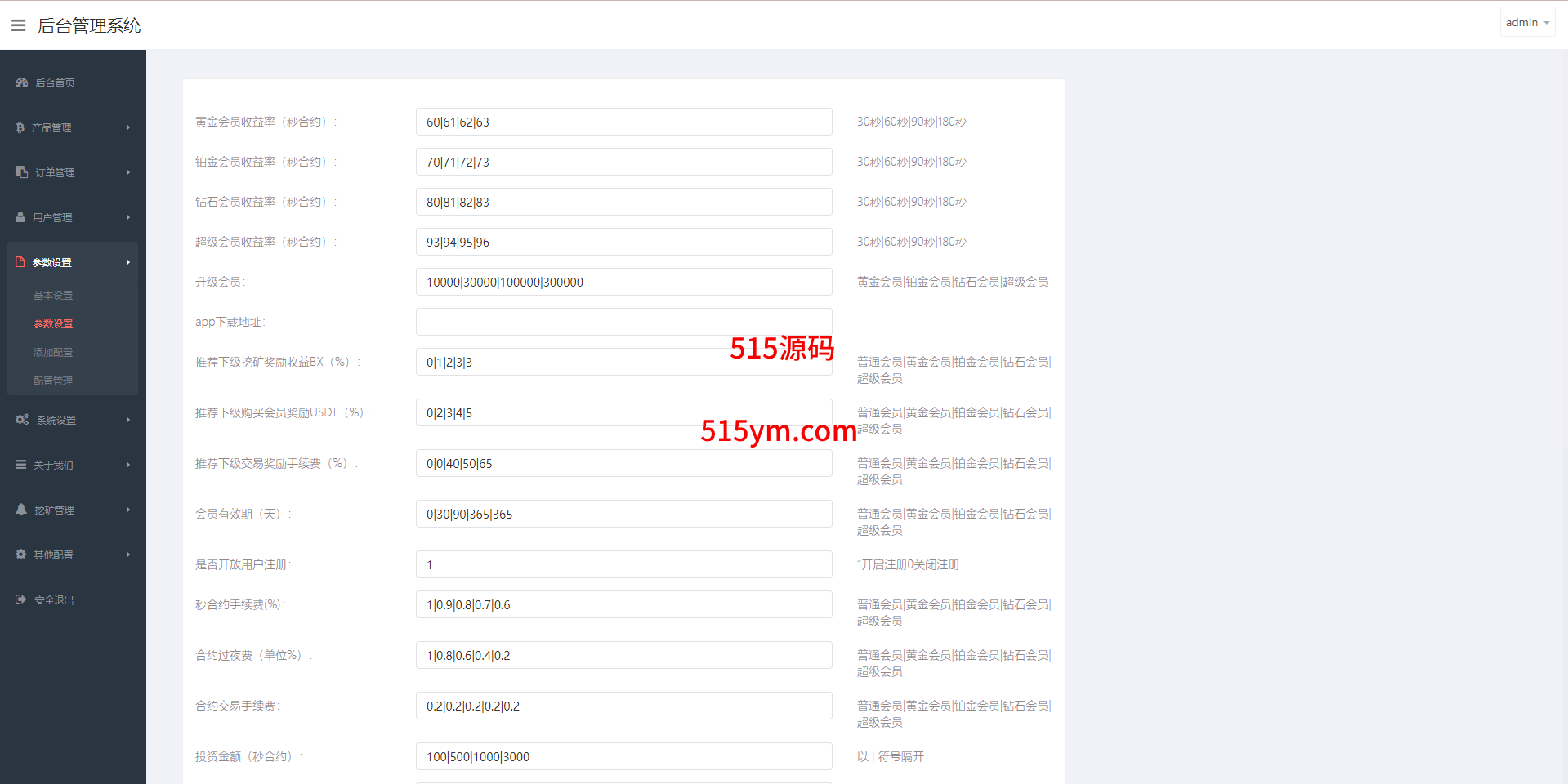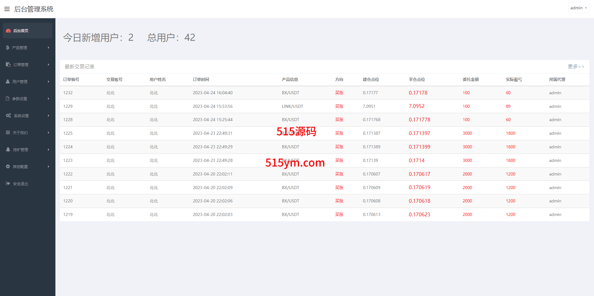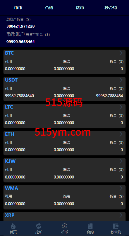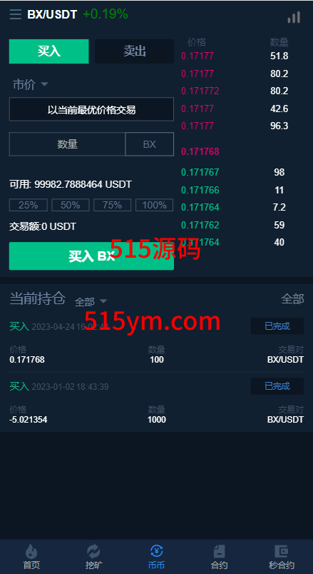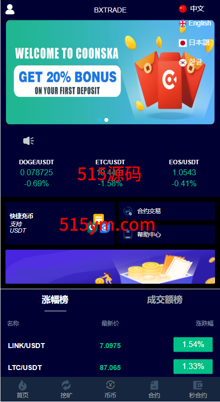系统支持币币交易、合约交易、秒合约交易、质押挖矿、实名认证、邀请推广、客服系统等功能
