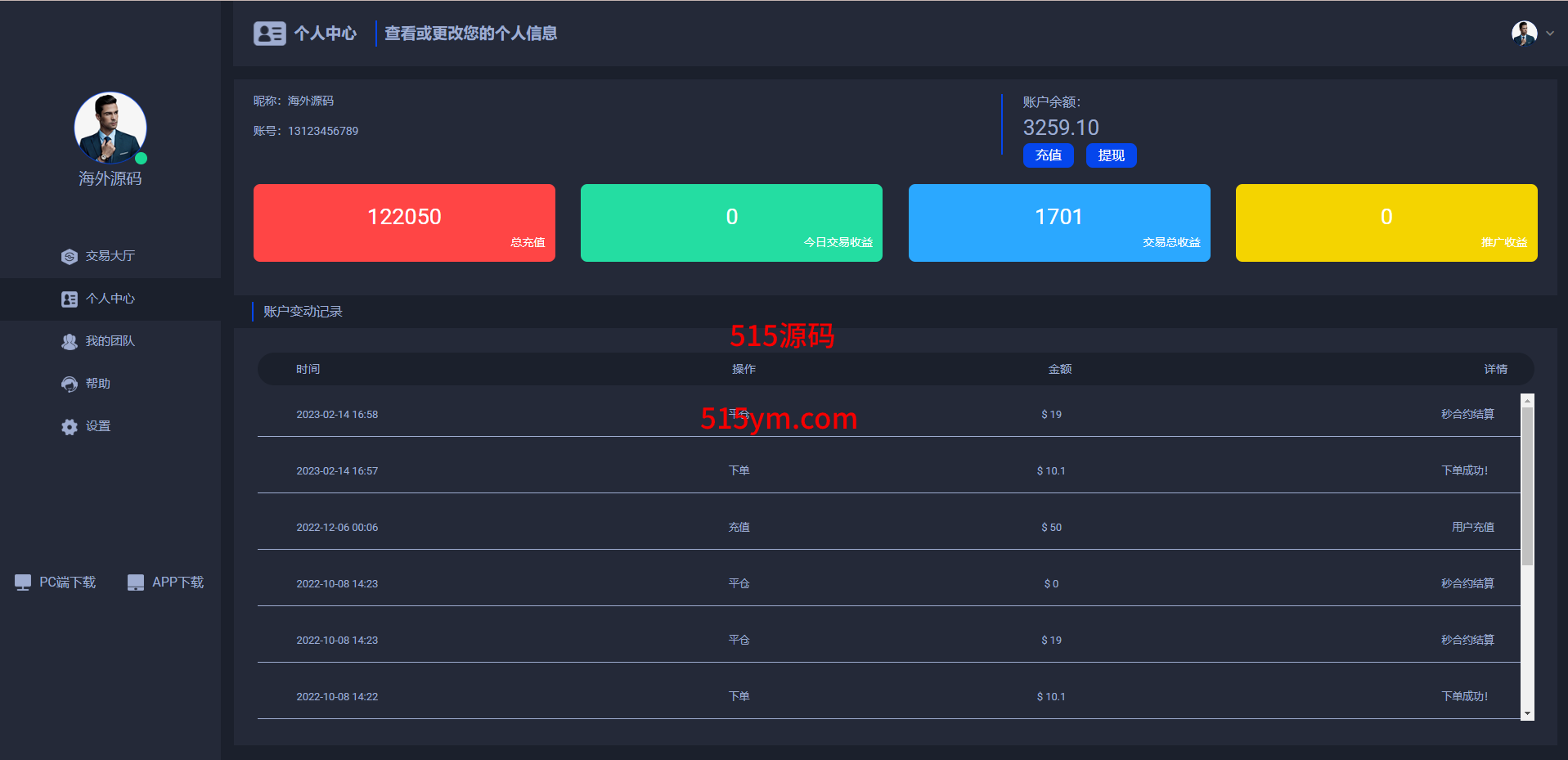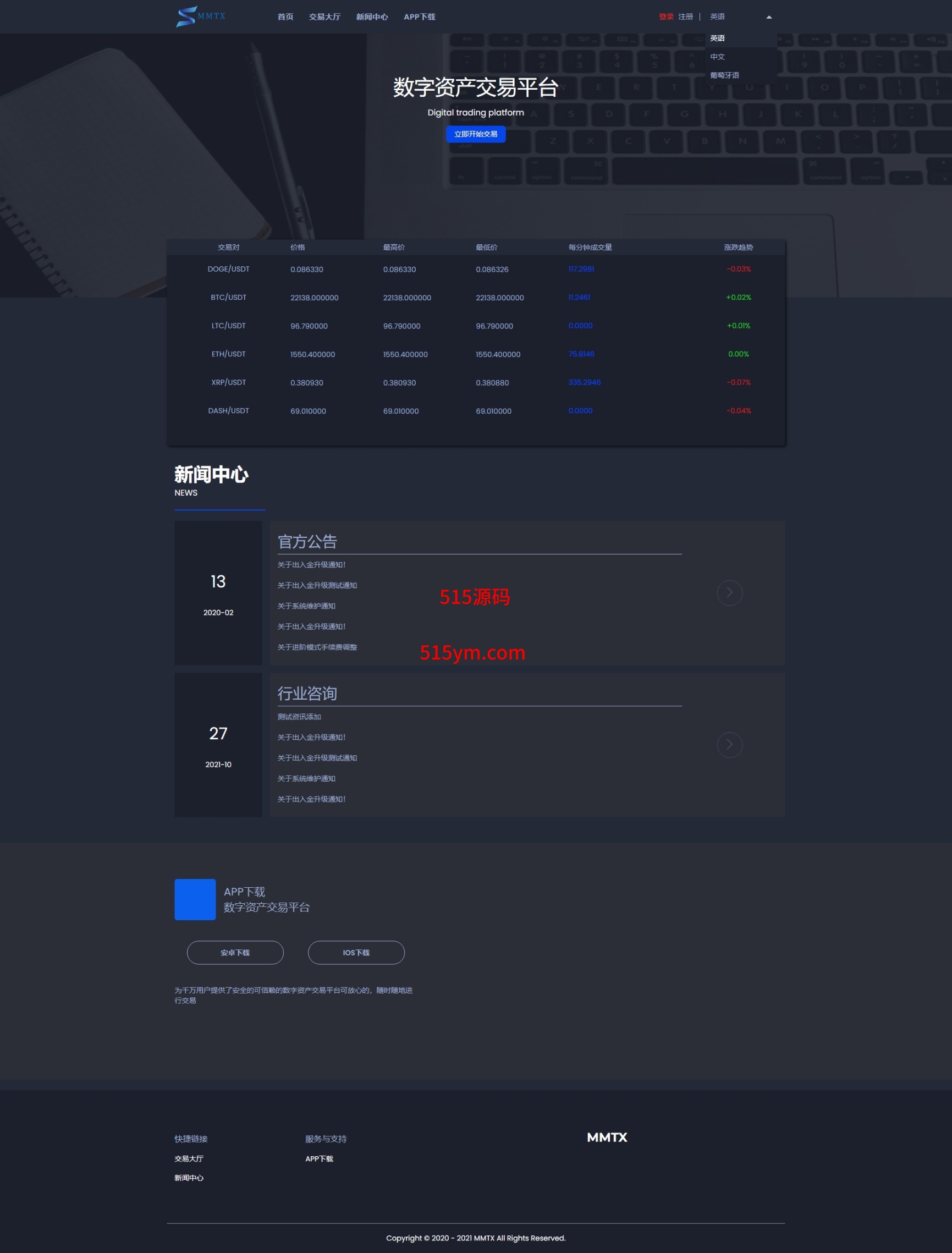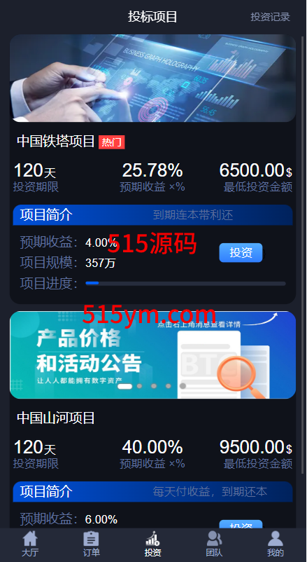 源码前端三种语言:中文、英文、葡萄牙语,系统自带客服系统、理财投资、推广等功能