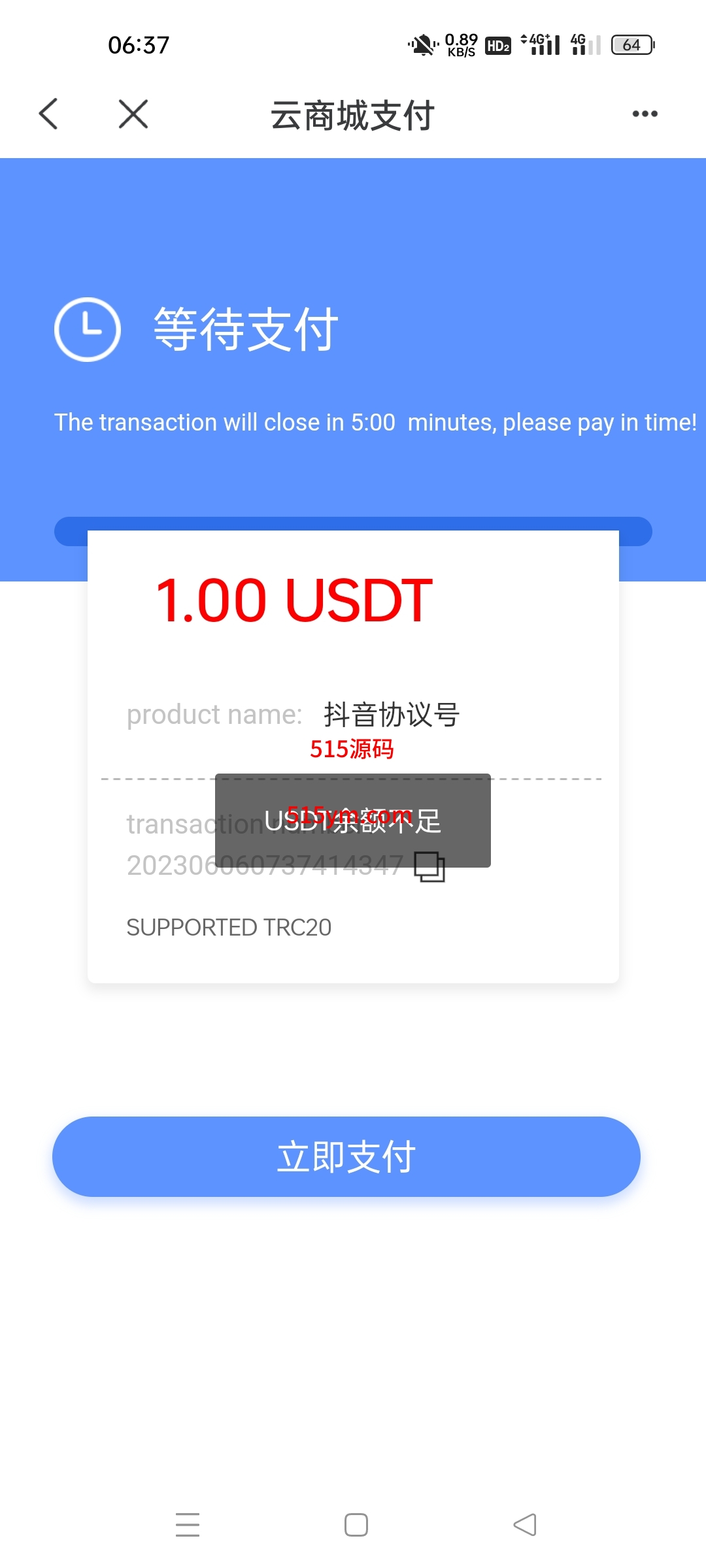 新增前端弹窗公告,支付提示usdt余额不足,支付提示首次支付trx不足100