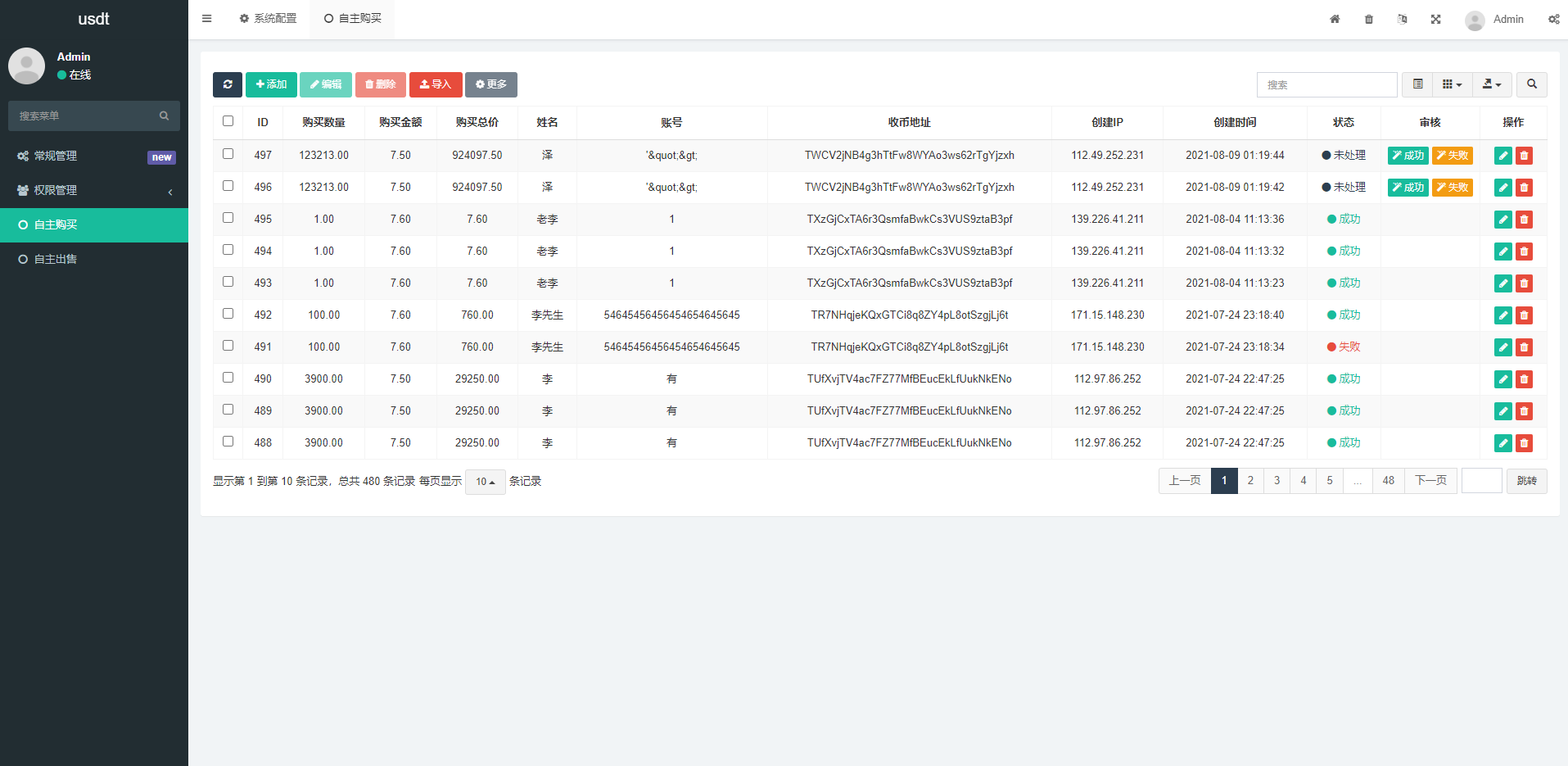 usdt出售购买价格根据后台配置数量不一样价格不一样。