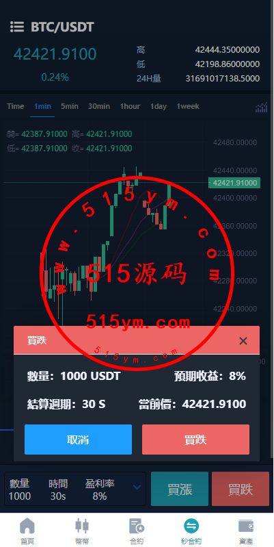 前端uniapp开发的带源码,后端php的laravel框架,K线是用go跑的