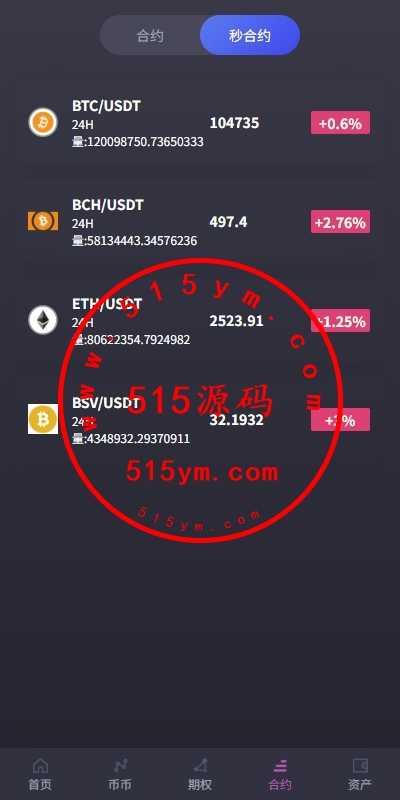 功能:币币交易,挖矿理财,申购新币,系统发行币,合约杠杆,秒合约交易,期权交易,平台币