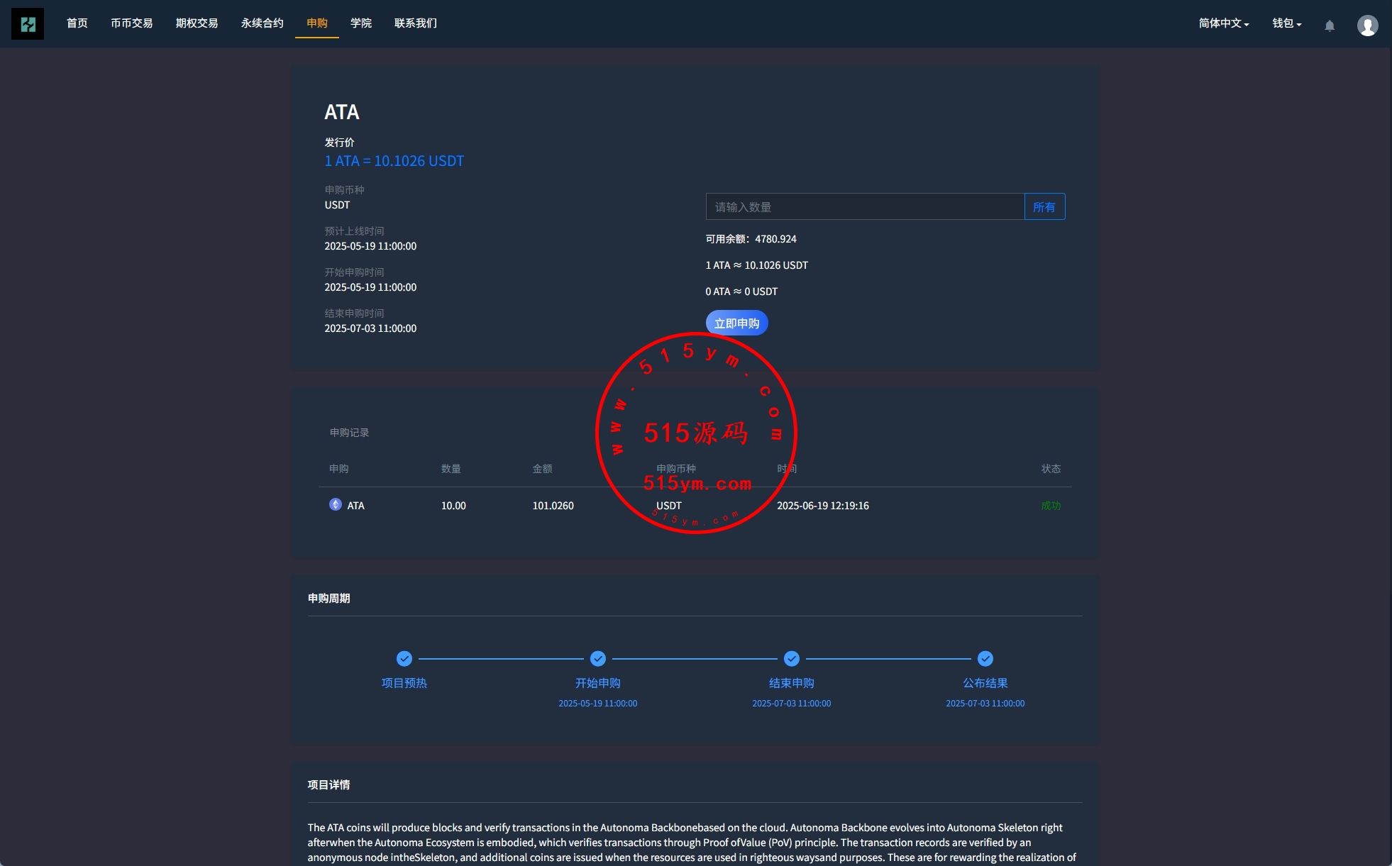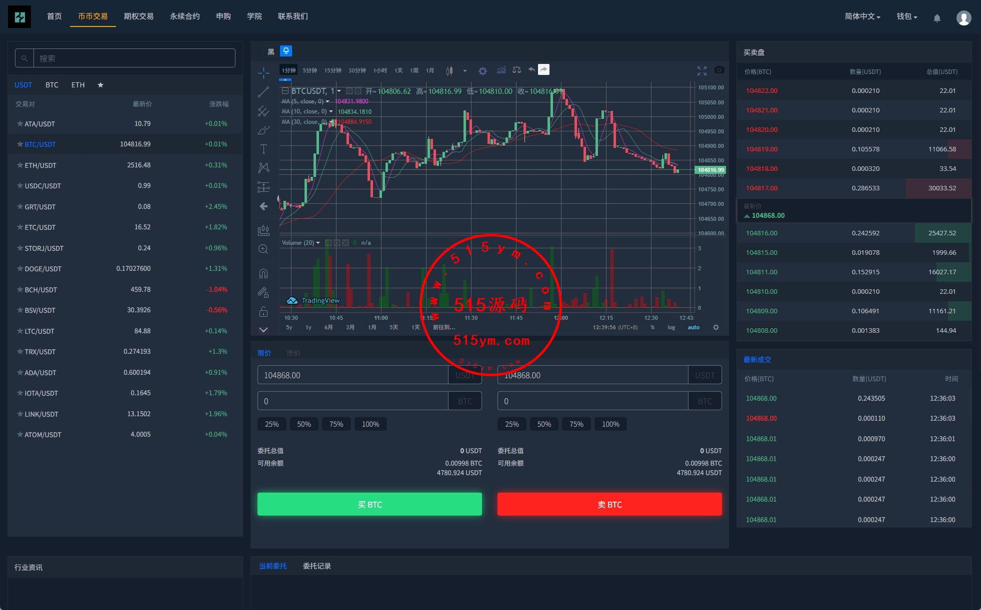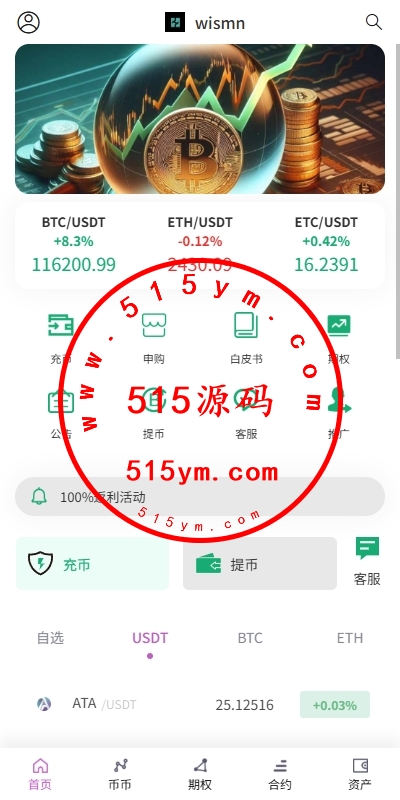 功能:币币交易,挖矿理财,申购新币,系统发行币,合约杠杆,秒合约交易,期权交易,平台币