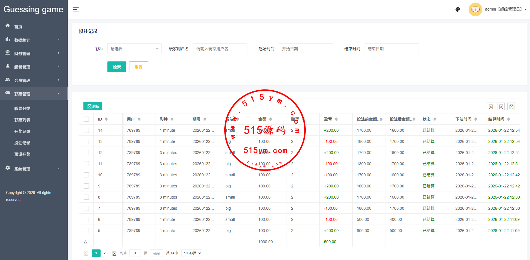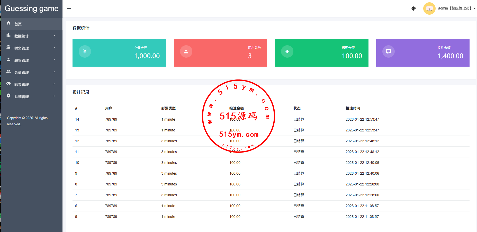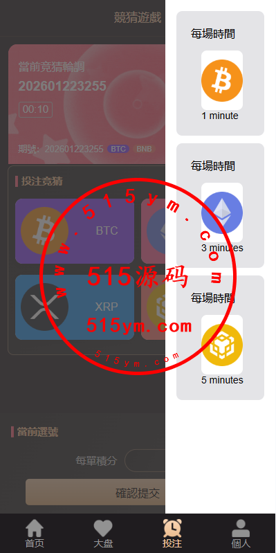 多语言虚拟币竞猜投注游戏,前端VUE带多语言,后端php开源带教程前端UI二开,支持1分钟,3分钟,5分钟下注玩法,带信用分等功能